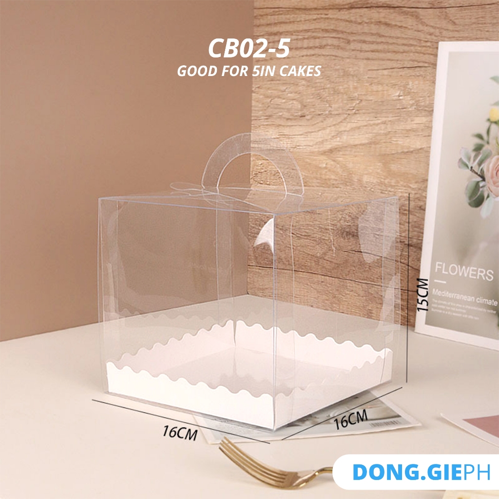 [5 PCS] CB02 Square Acetate Cake Bento Box with Round Handle (Includes Insert Tray)
