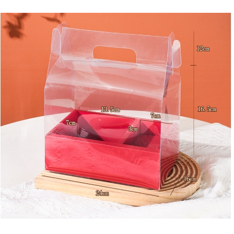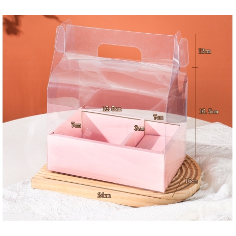 [5 PCS] Transparent Acetate Flower Mini Cake Gift Gable Box With Divider Handle Mothers Day