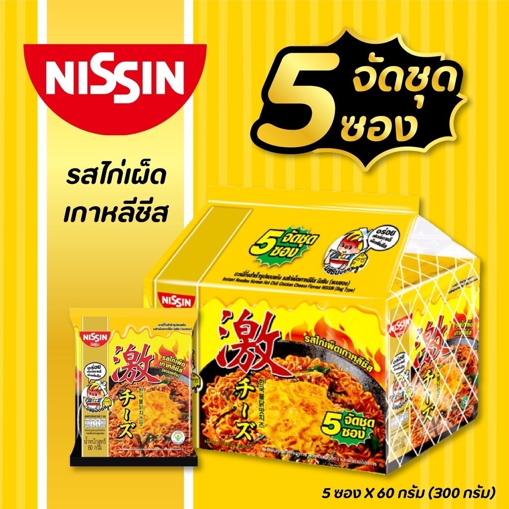 [Pack Of 5] Nissin Halal Instant Noodles 60/73 Grams Spicy Korean Chicken Flavor Original Japanese
