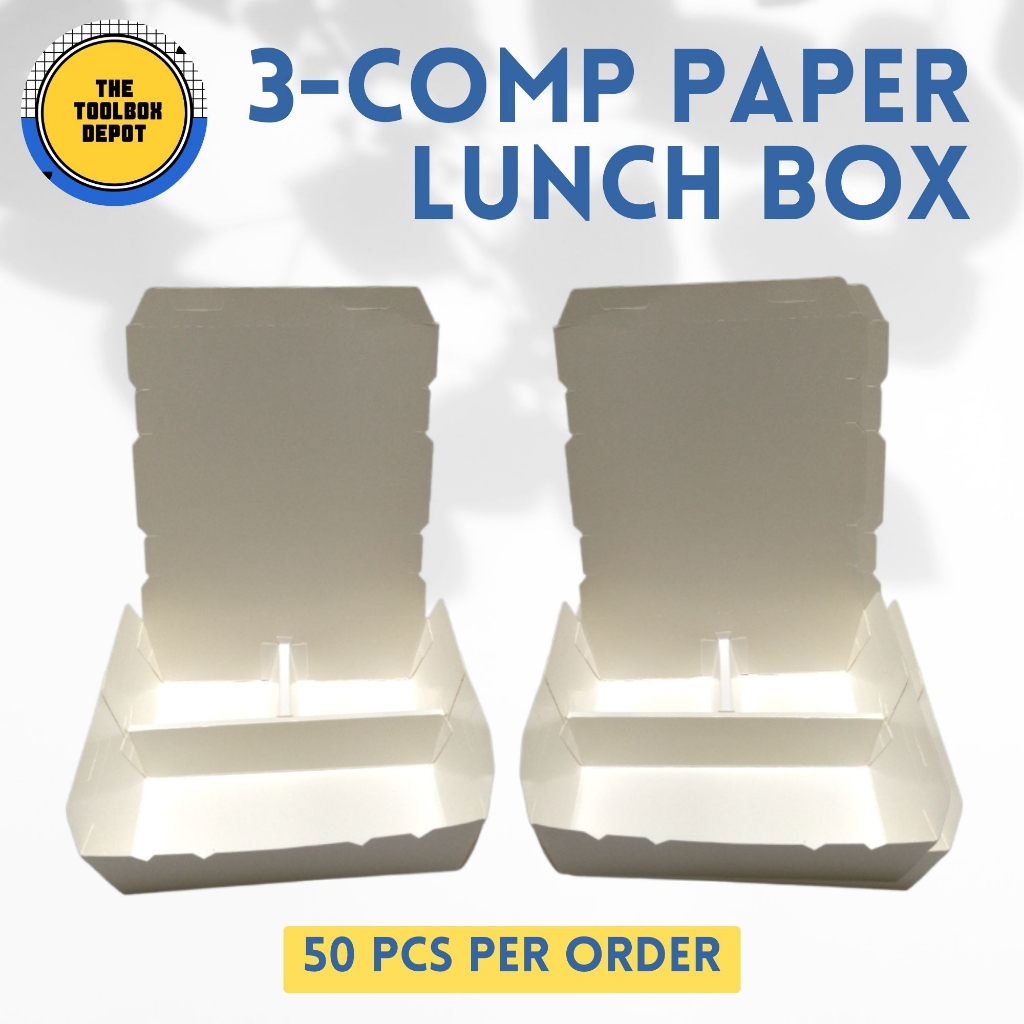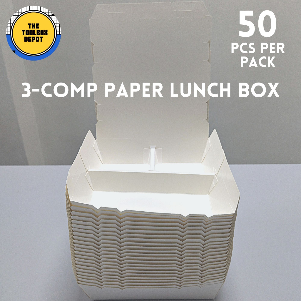 [50 PCS] - 800cc Paper Meal Box 3 Divisions Takeout Box - (White Eco-Friendly)