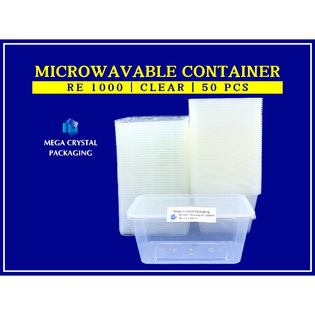 [ 50 Pcs ] Microwavable Plastic Container RE 1000 - Rectangular 1000 ml CLEAR