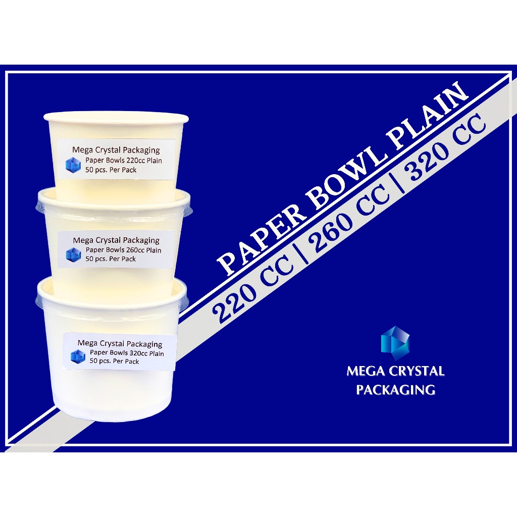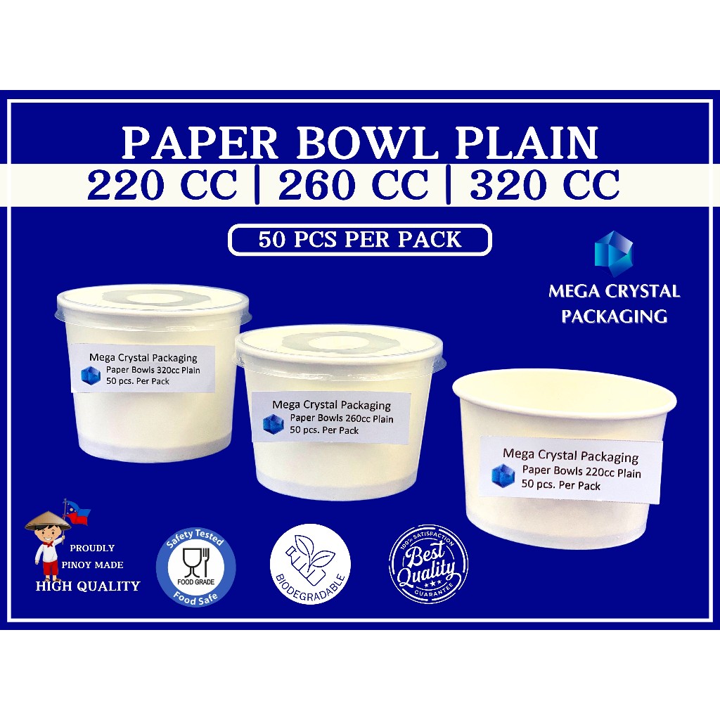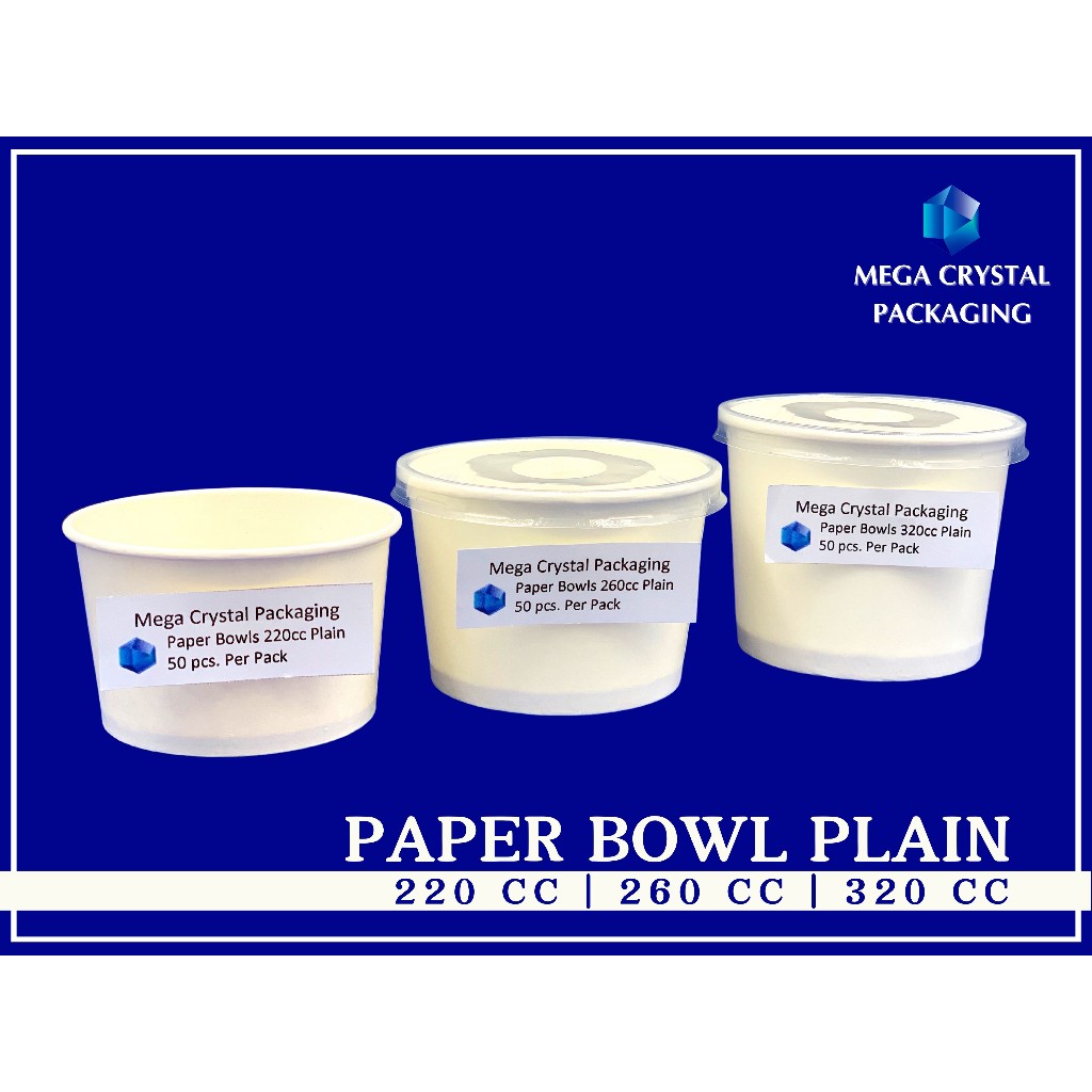 [ 50 Pcs. ] Paper Bowl Plain 220 / 260 / 320 CC with/without PP Lid ( Double Coated )