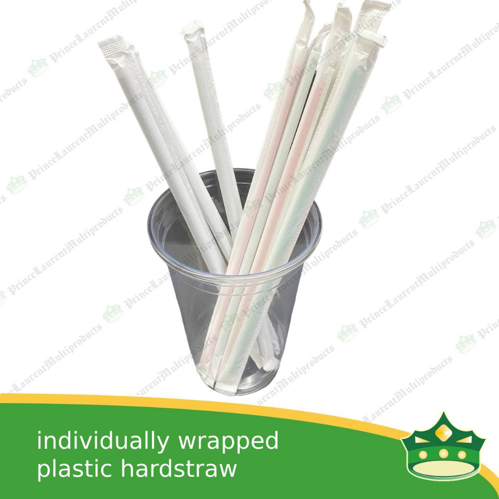 [500 pcs] individually wrapped plastic drinking straw hard straw colored for cold drinks, smoothie