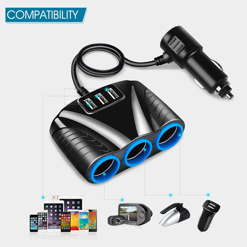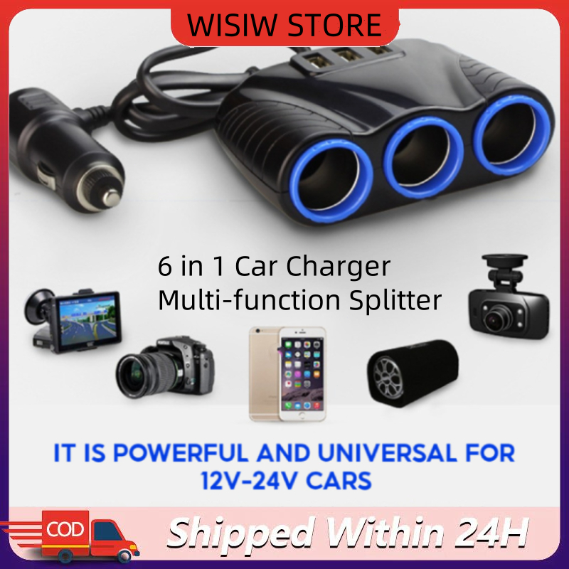 [6 in 1] Car Charger 12-24V Splitter 3 Ports Integrated 3 High-End USB Car Charger Socket