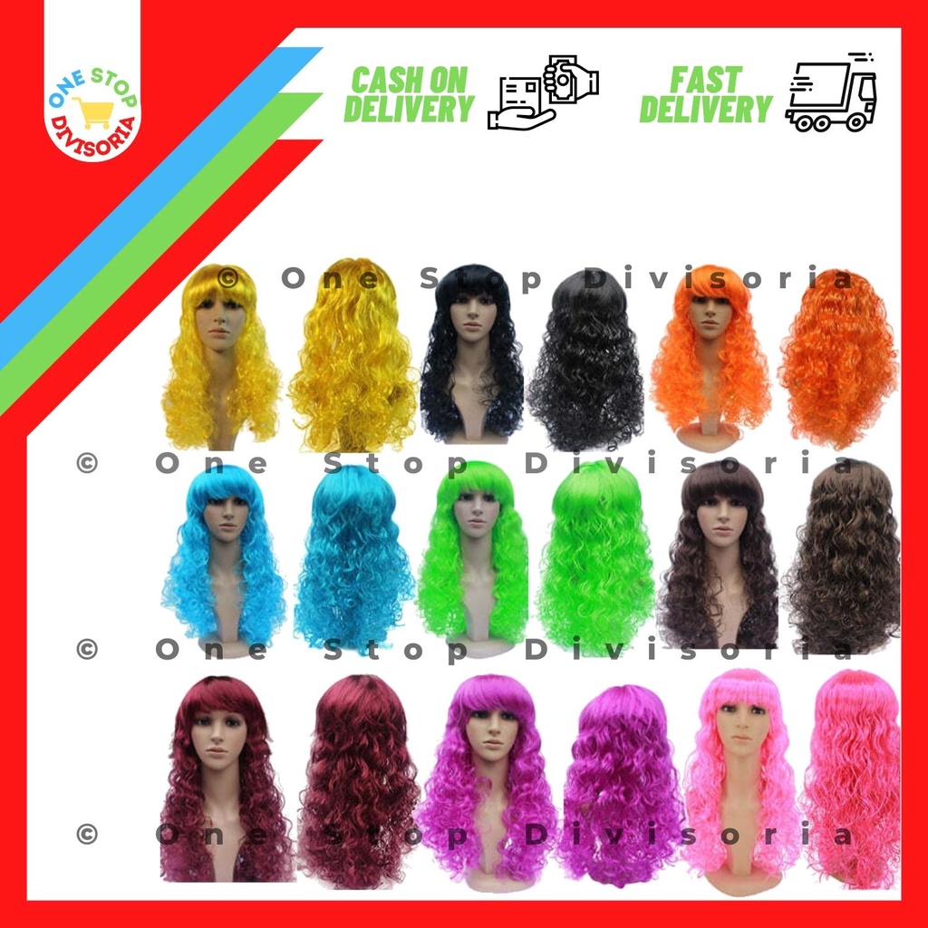 [60CM] Long Wig with Bangs | Straight / Curly | Fake Synthetic Colored Human Hair for Adults Kids