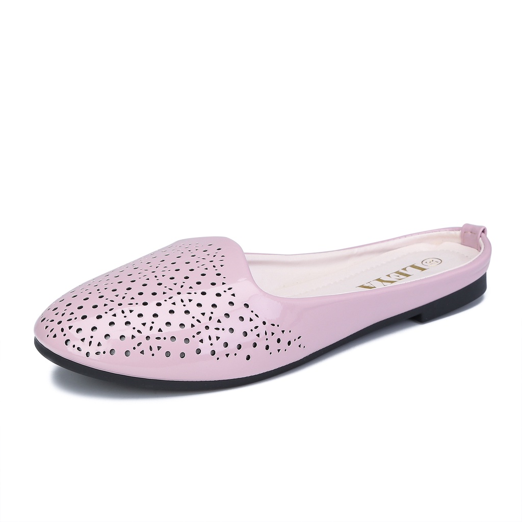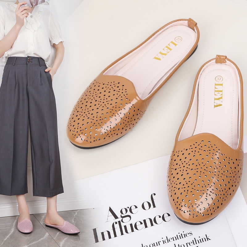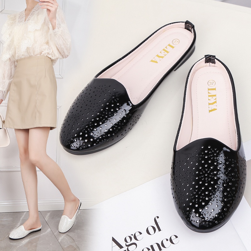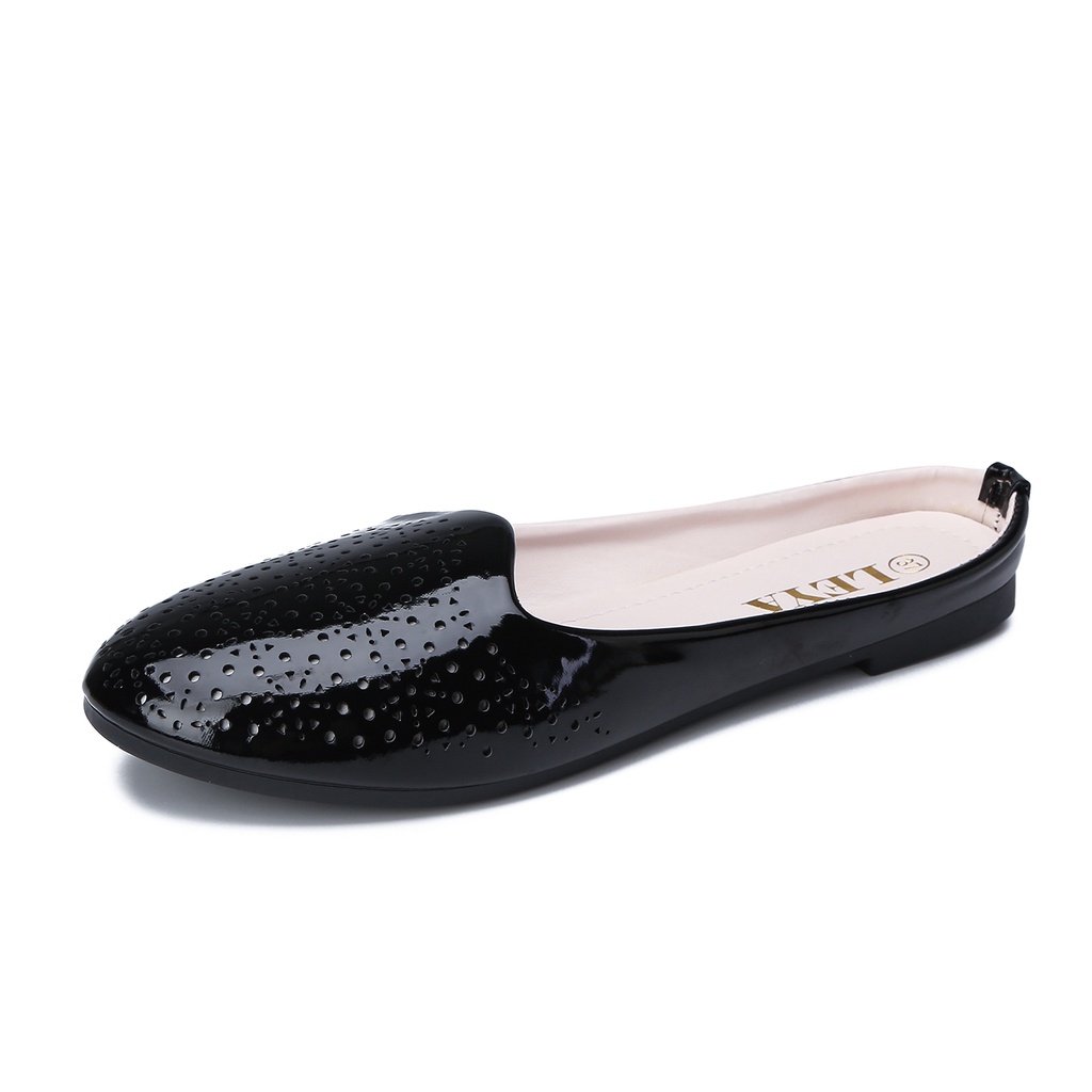 LEYA Glossy Leather Half Flat Shoes #7705 Women's Comfortable Walking Shoes