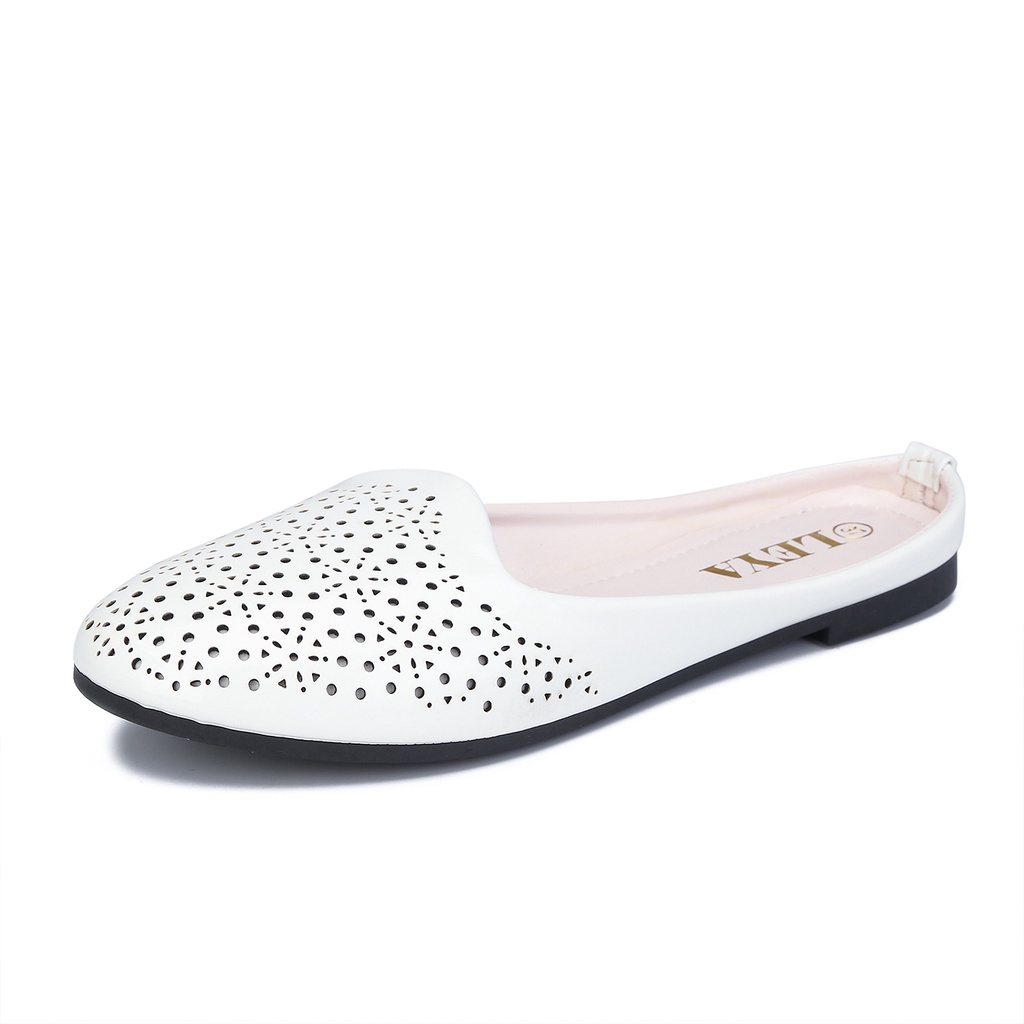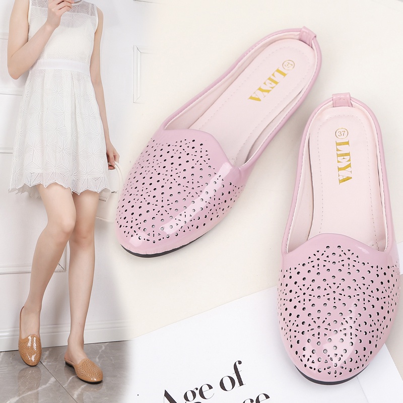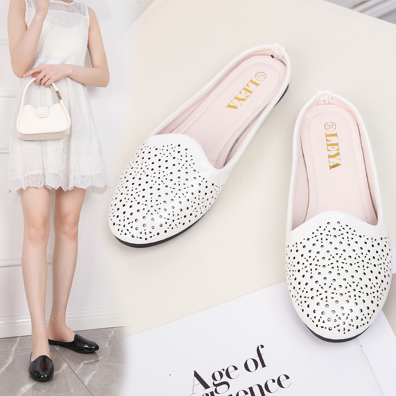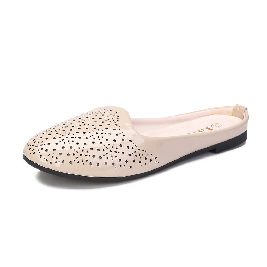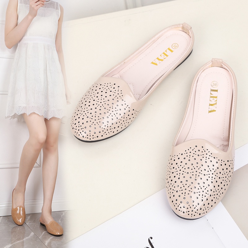 LEYA Glossy Leather Half Flat Shoes #7705 Women's Comfortable Walking Shoes