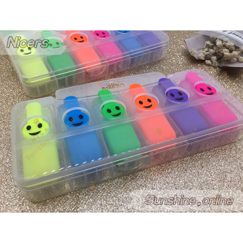 #805-6 6in1 smiley mini highlighter with case