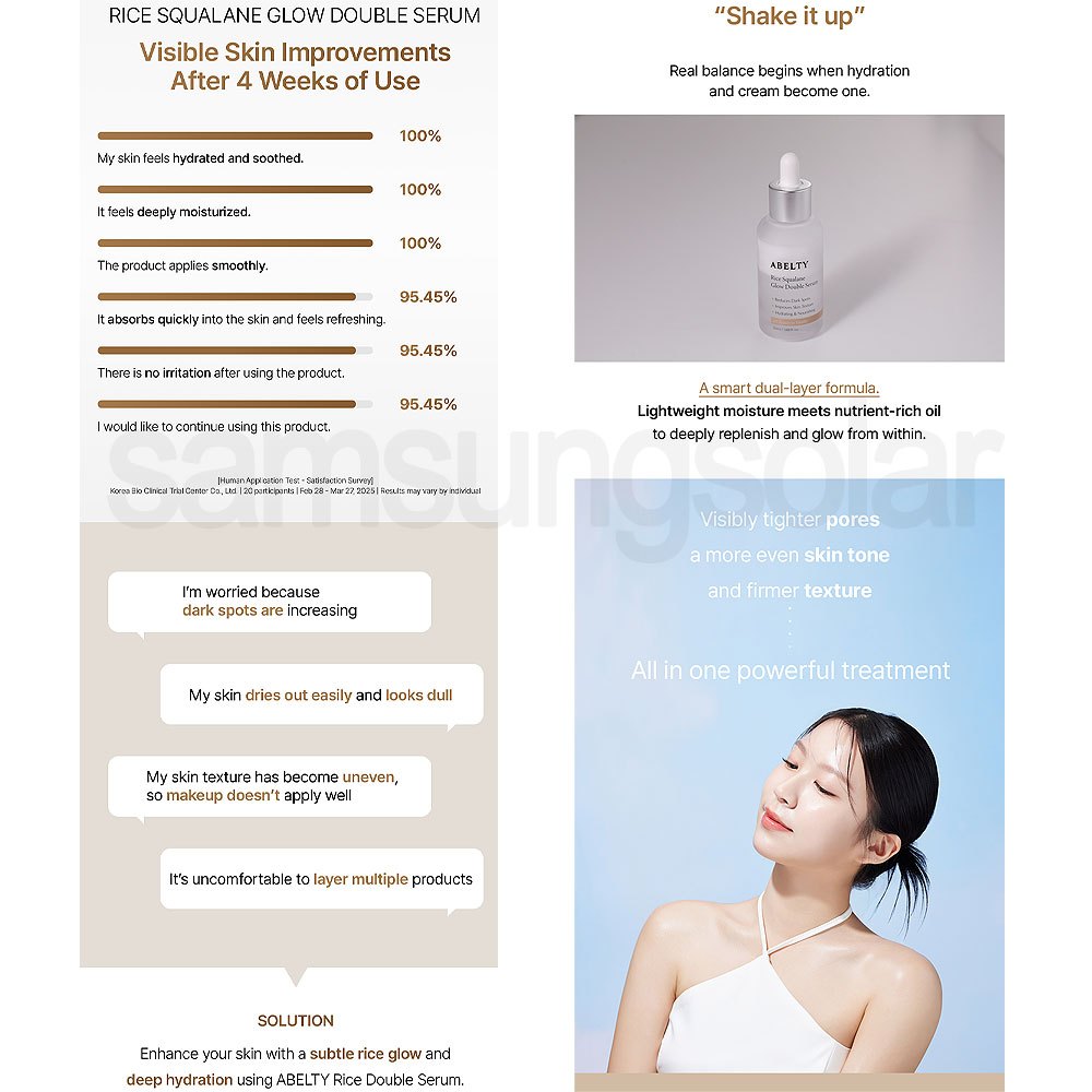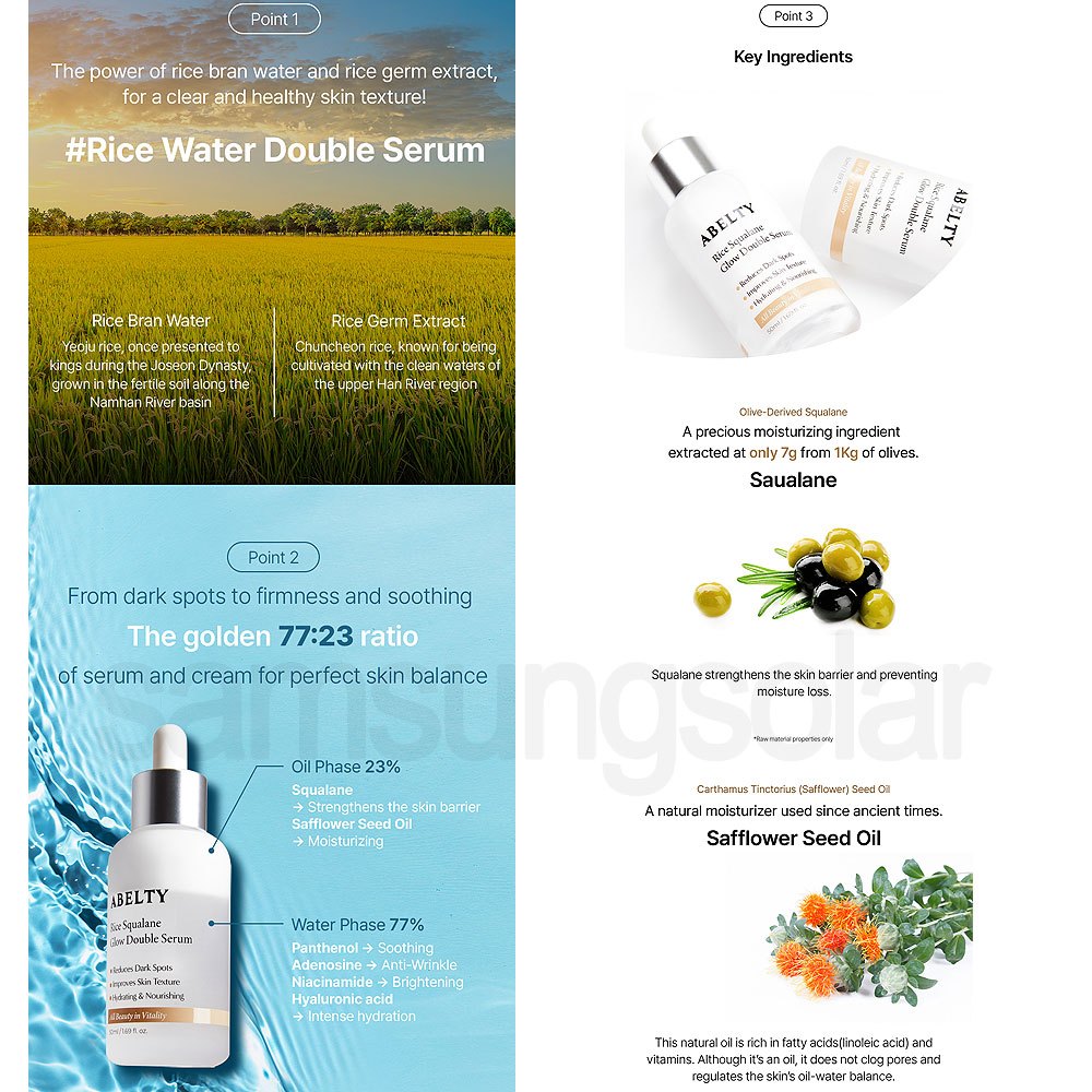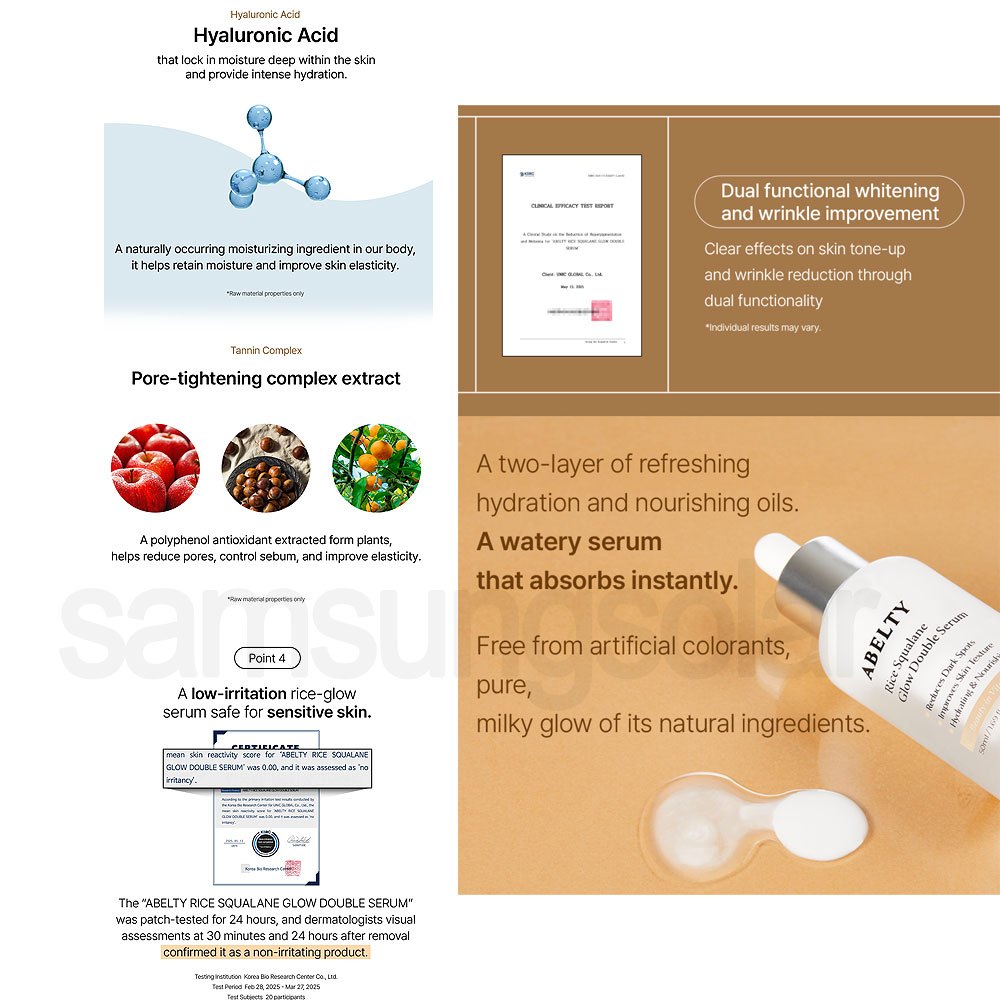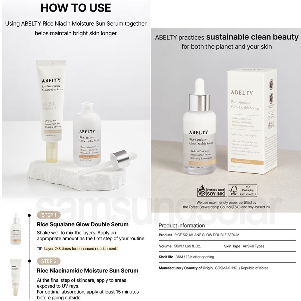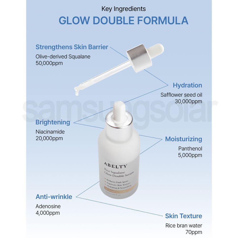 [ABELTY] Rice Squalane Glow Double Serum 50ml 5% Olive Squalane, 2% Niacinamide