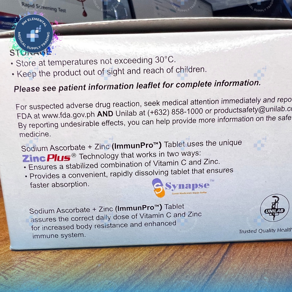 [ BOX ] IMMUNPRO - Ascorbic Acid + Zinc 100 Tablets