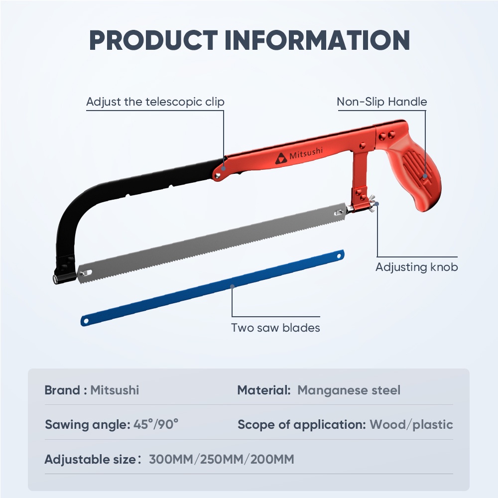 [BUY 1 FREE 1]Mitsushi Hacksaw/Adjustable Hacksaw/Woodworking tools/Hand Saw/Hack Saw with Blade