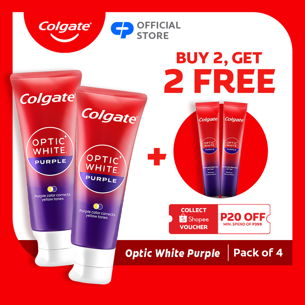 [BUY 2, FREE 2] Colgate Optic White Whitening Toothpaste Purple, 100g x2 + 37g x2