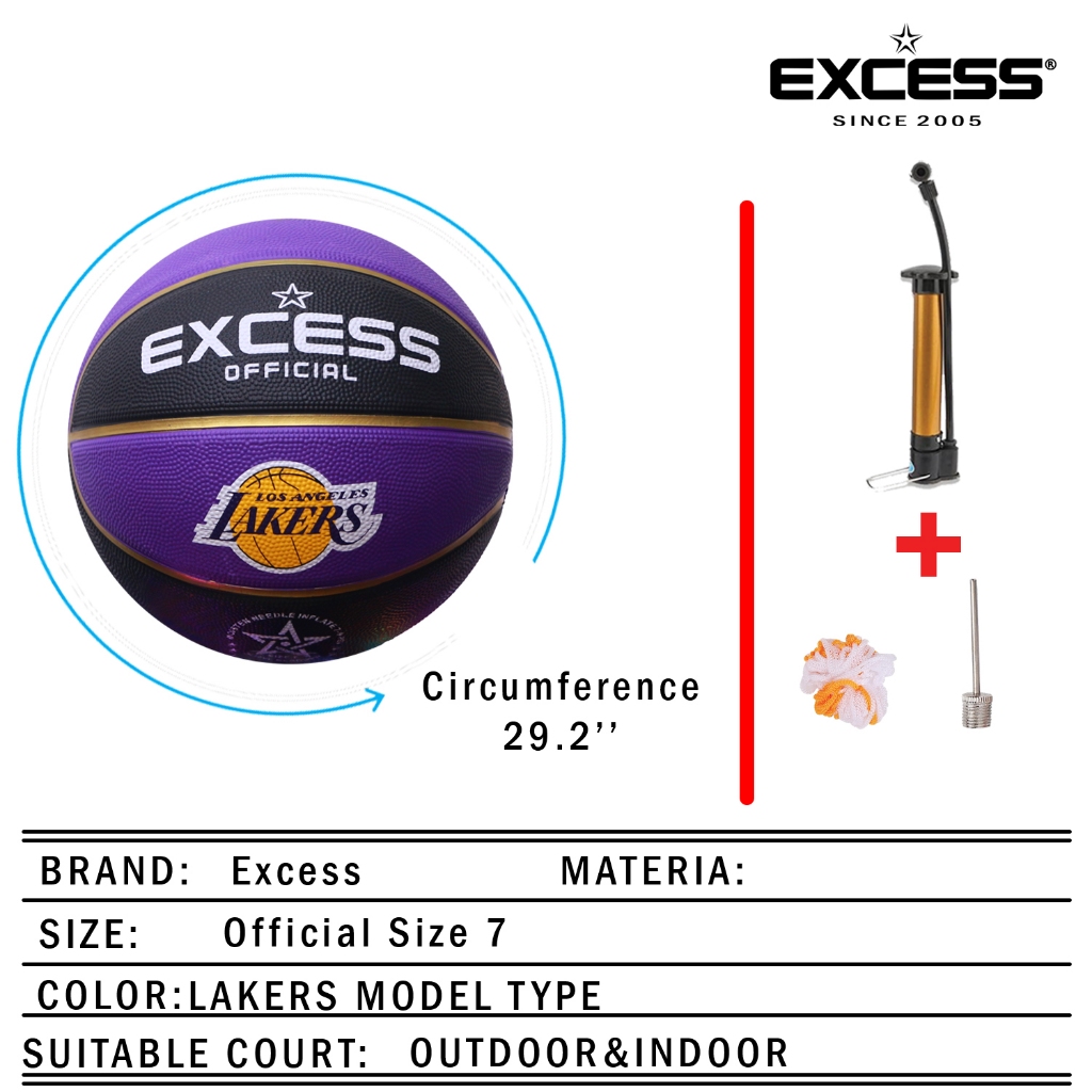 [BUY1 Get 2 free items] Excess limited Edition Laker Violet size7 rubber basketball+pinnet+pump