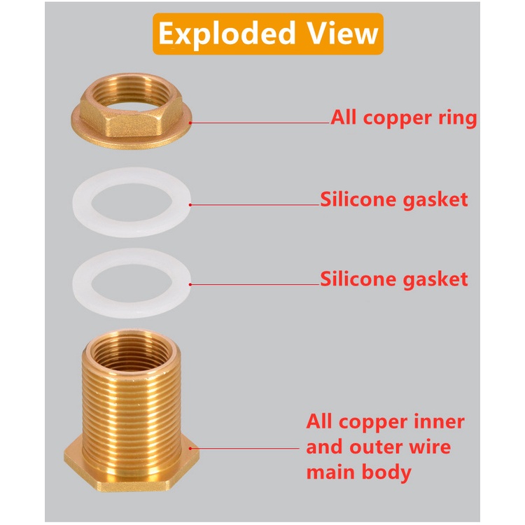 [Bellamy] Solid Brass Water Tank Connector Fittings Leak-proof M1/2'' M3/4'' M1'' Adapter