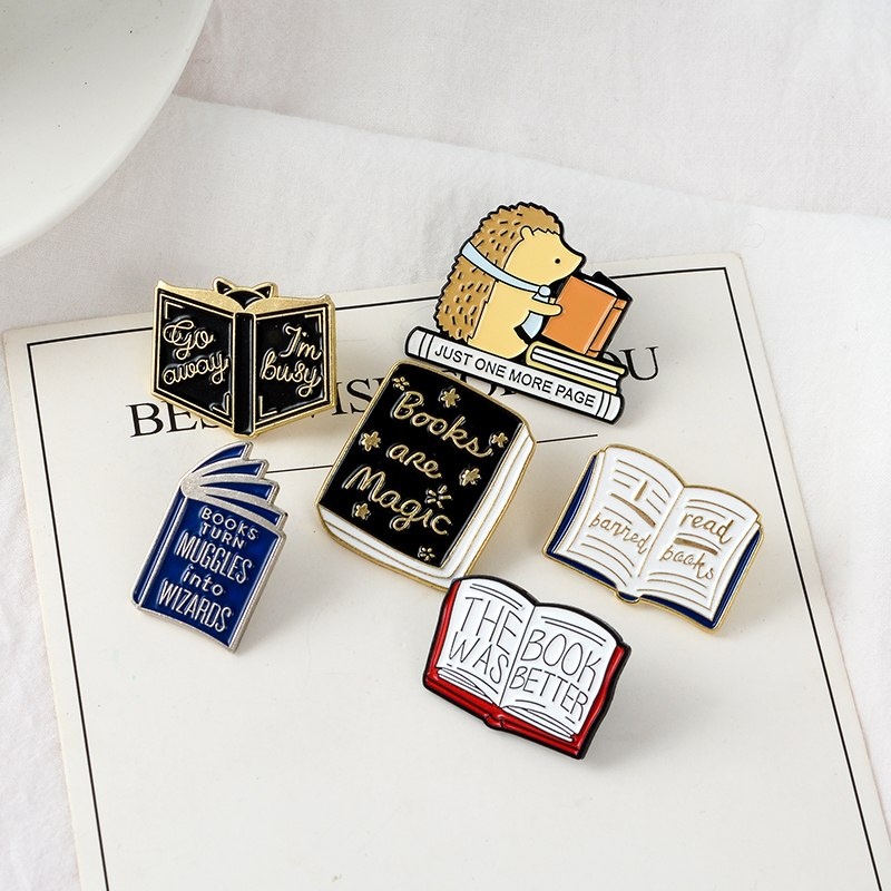 "Books Are Magic" Book Enamel Pins Reader Brooches Book Badges Lapel Pins Gift for Book Lover Reading Bibliophile Student