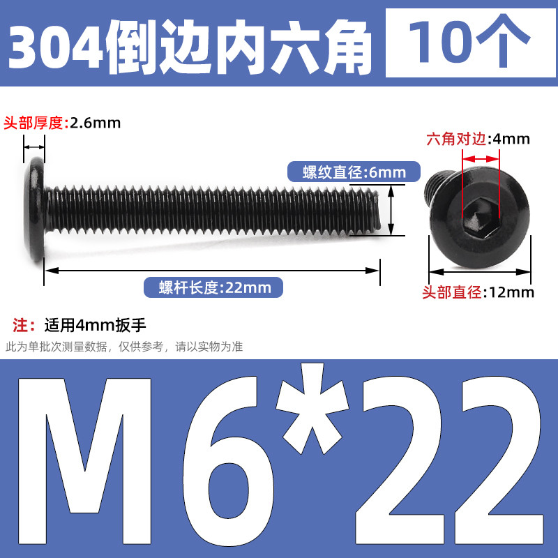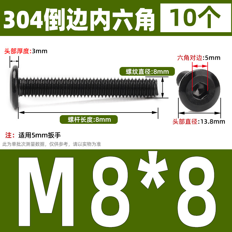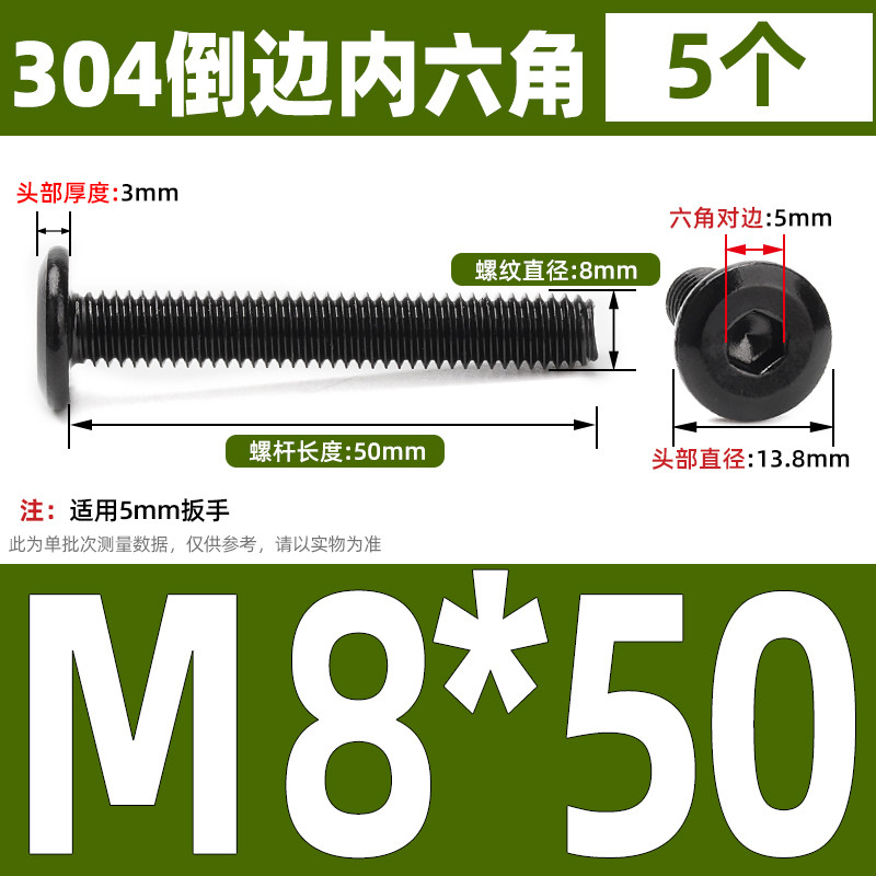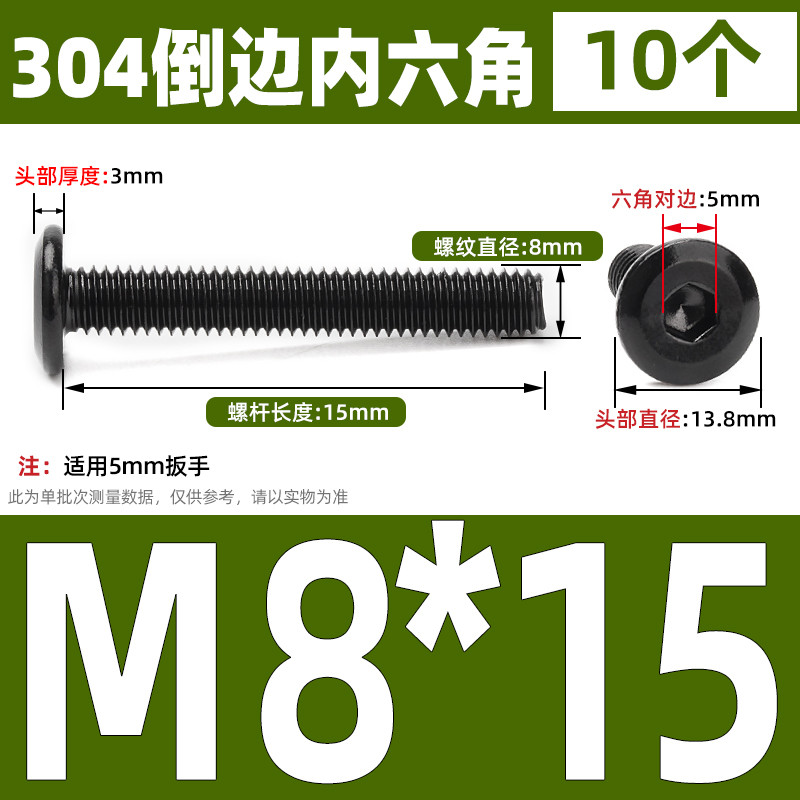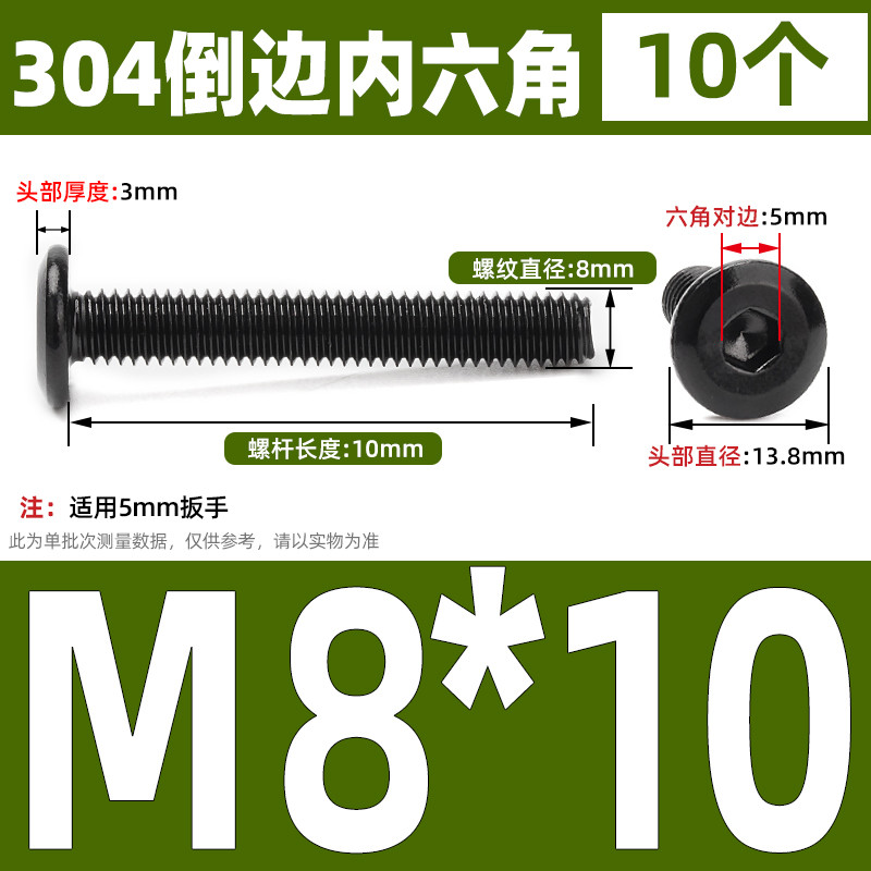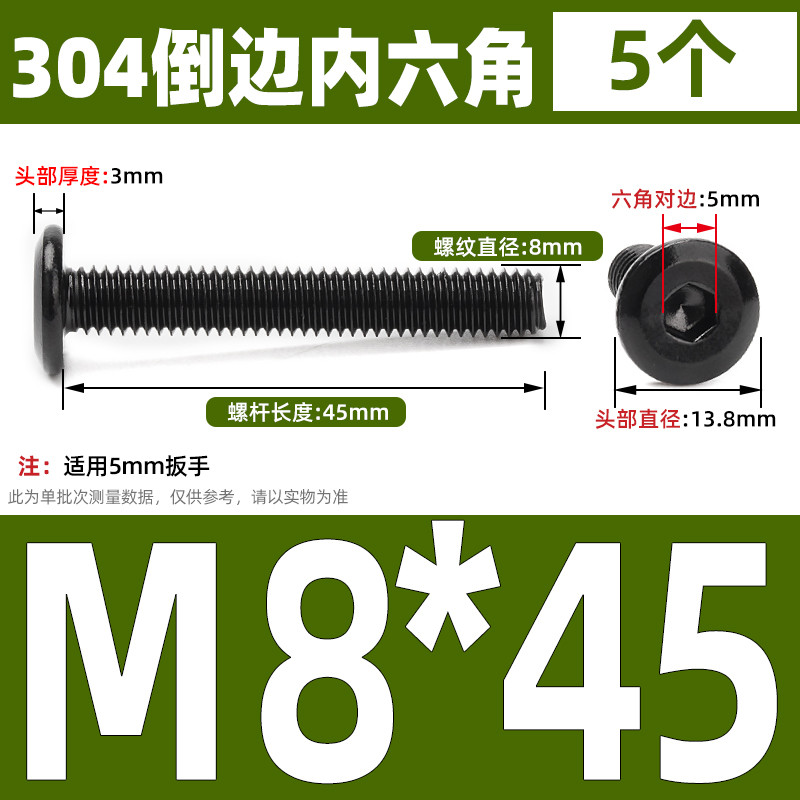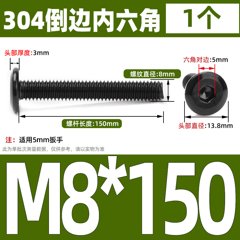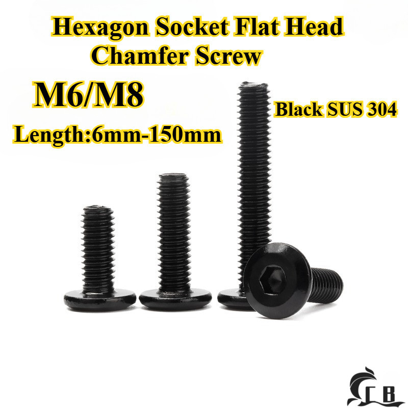[CB-NLJLS] Black SUS304 Hexagon Socket Flat Head Chamfer Screw M6/M8 Flat Head Chamfer Bolt, Length 6mm-150mm, Furniture Screw