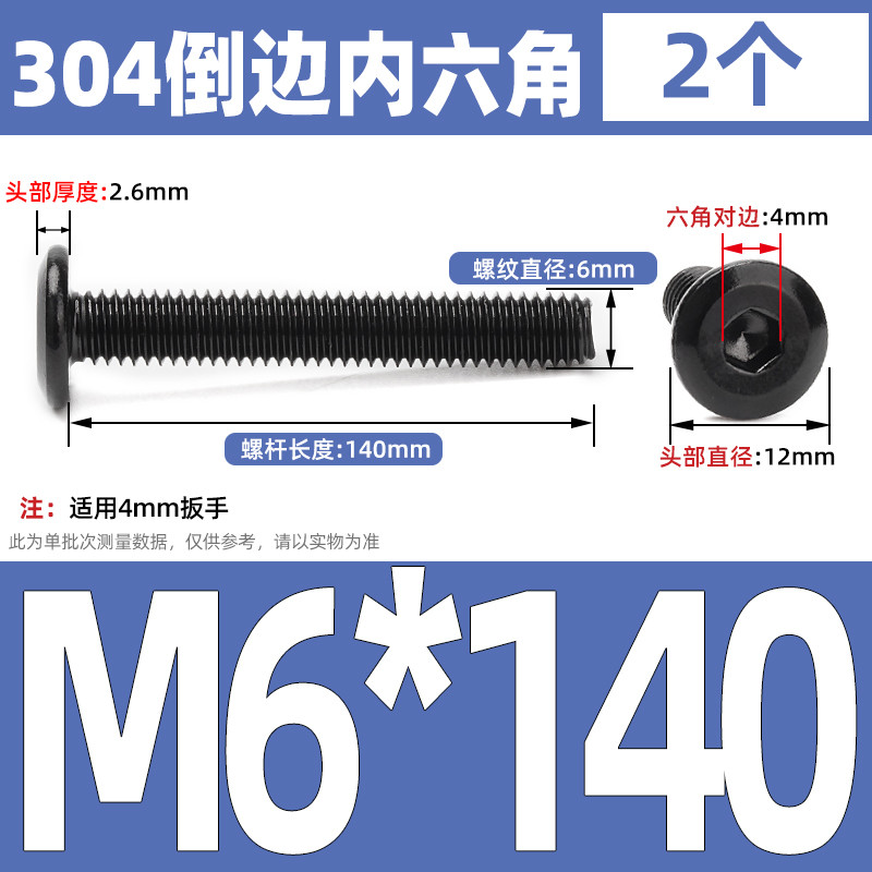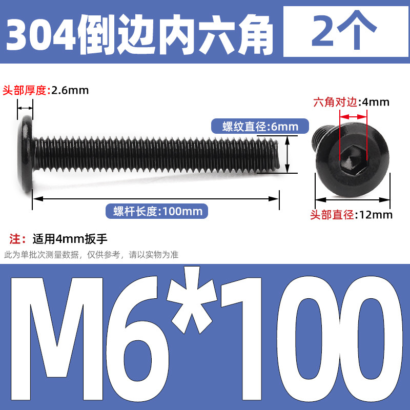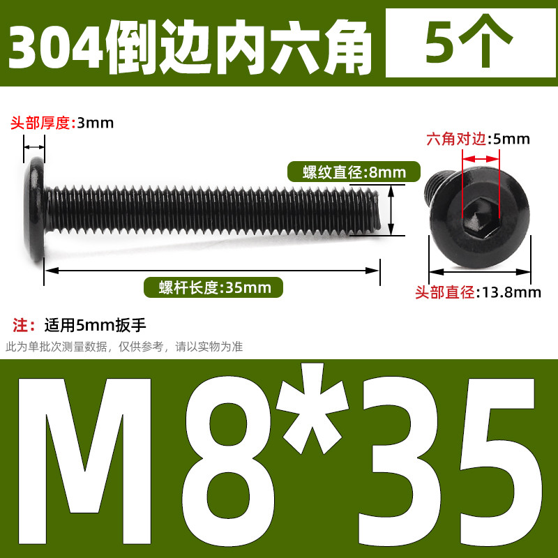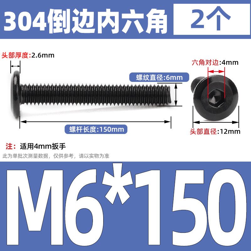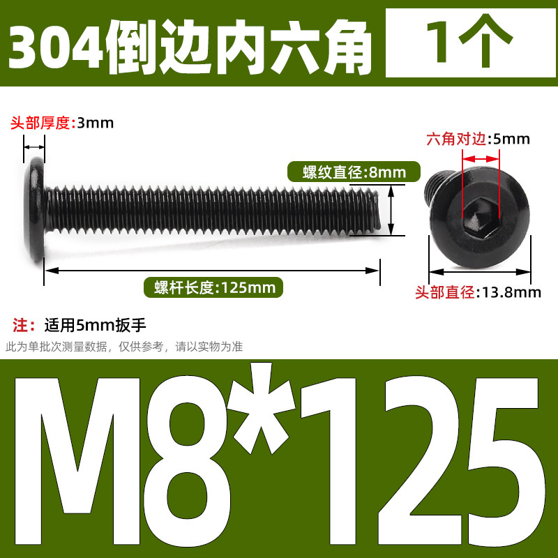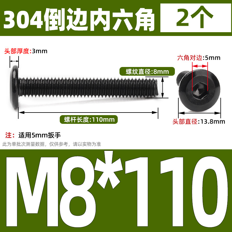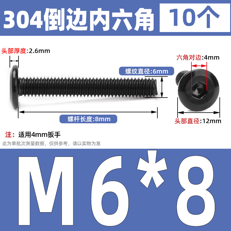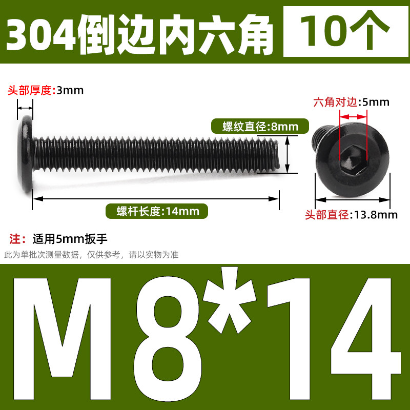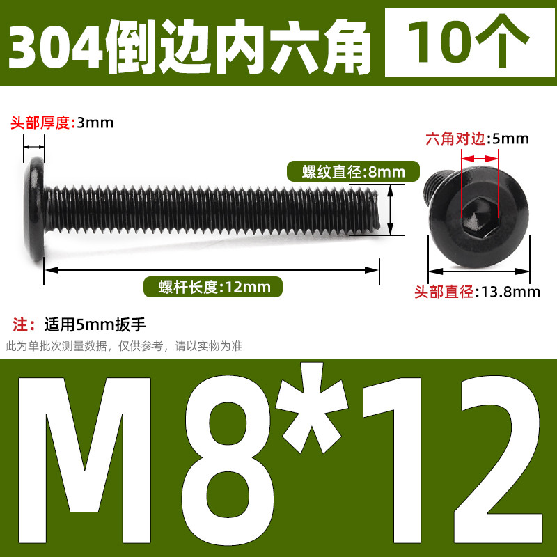 [CB-NLJLS] Black SUS304 Hexagon Socket Flat Head Chamfer Screw M6/M8 Flat Head Chamfer Bolt, Length 6mm-150mm, Furniture Screw