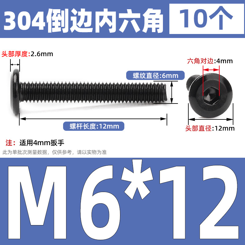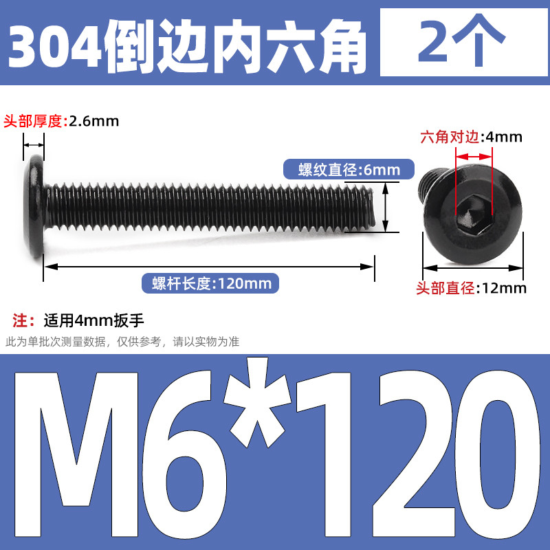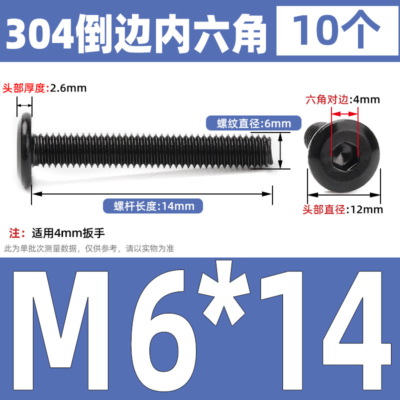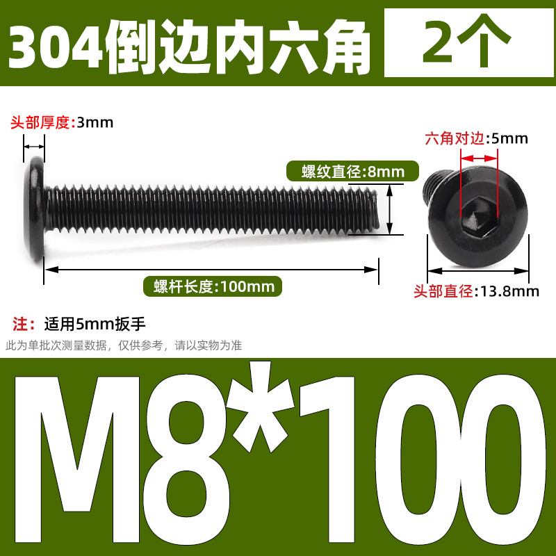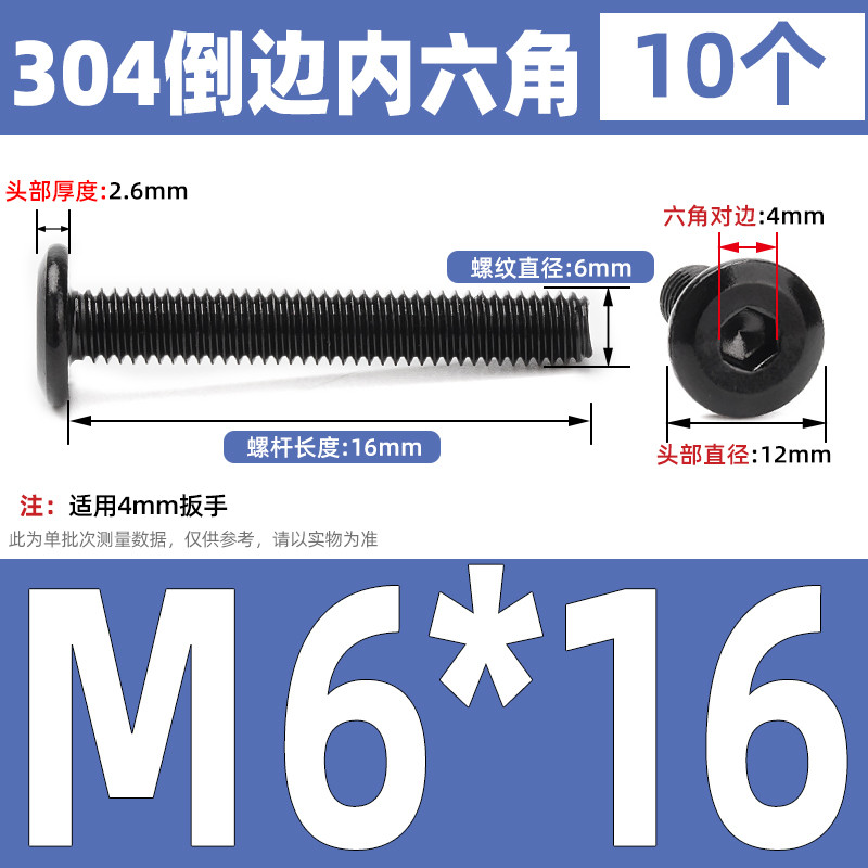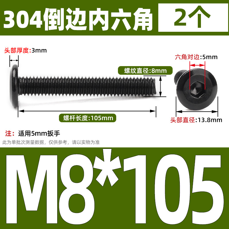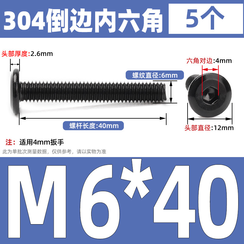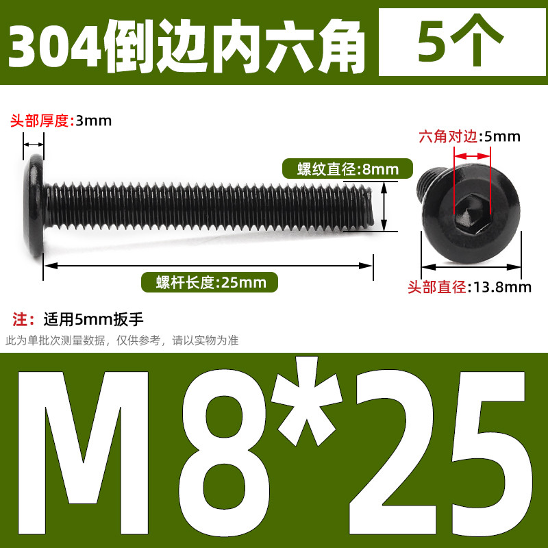 [CB-NLJLS] Black SUS304 Hexagon Socket Flat Head Chamfer Screw M6/M8 Flat Head Chamfer Bolt, Length 6mm-150mm, Furniture Screw