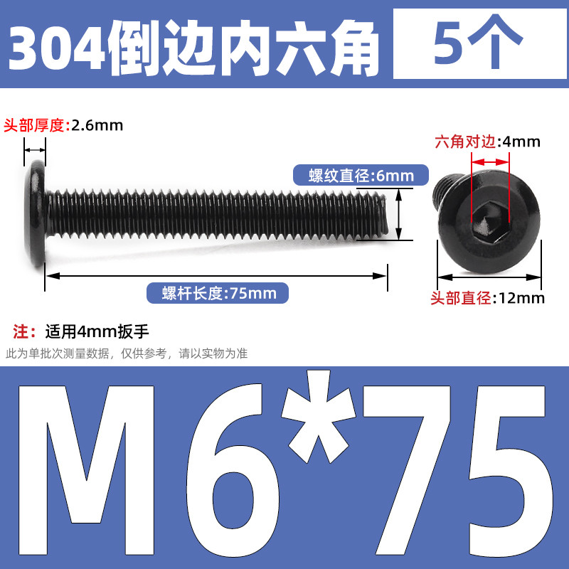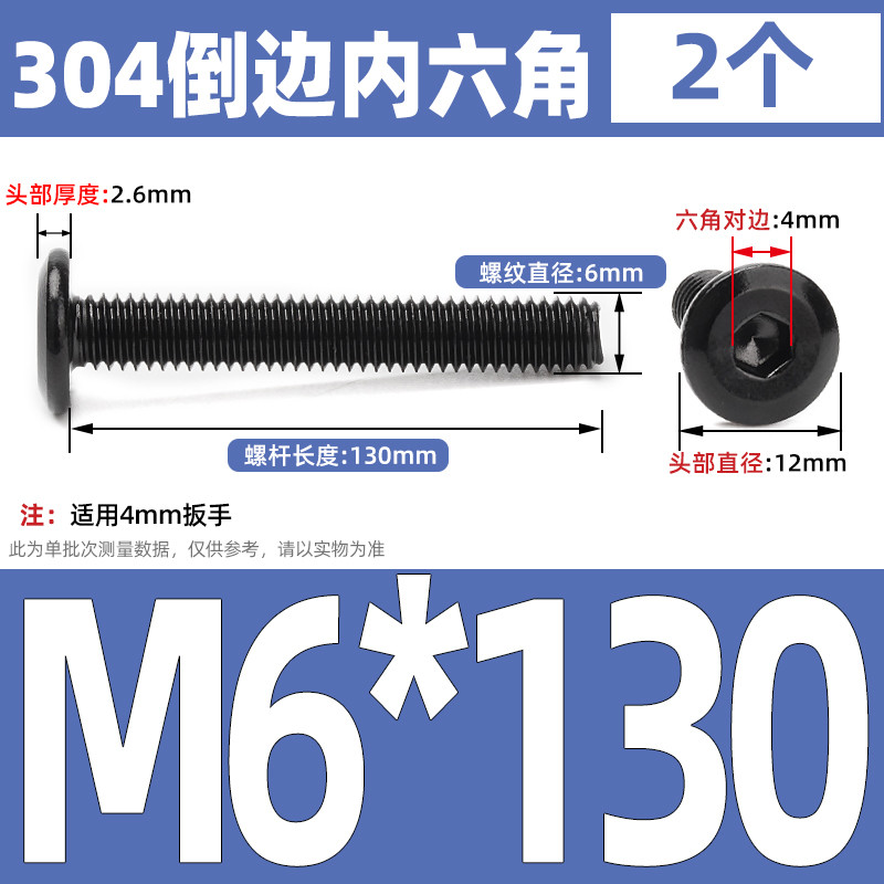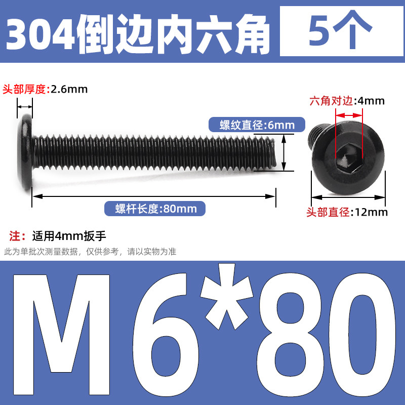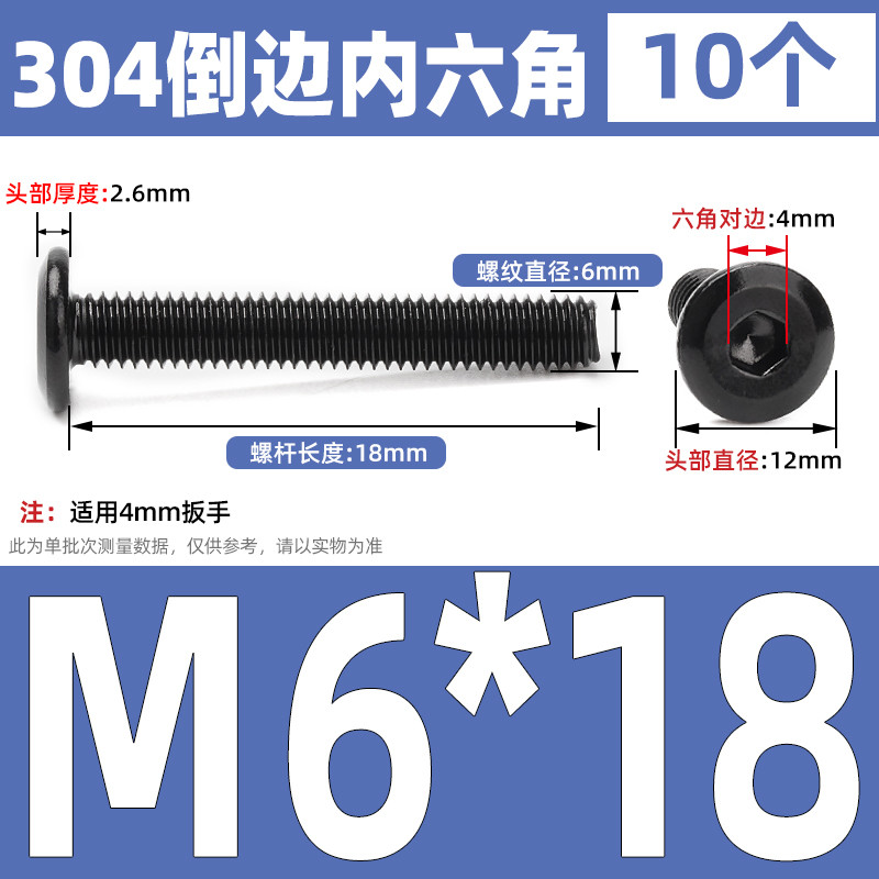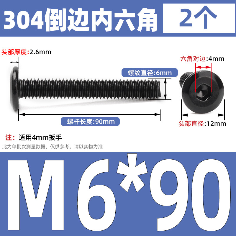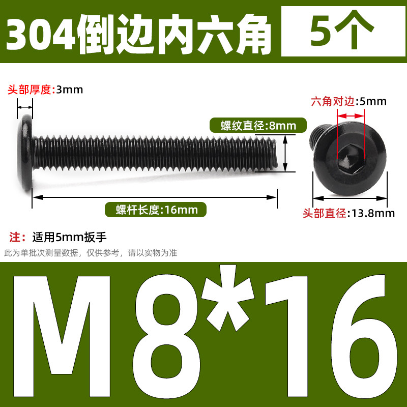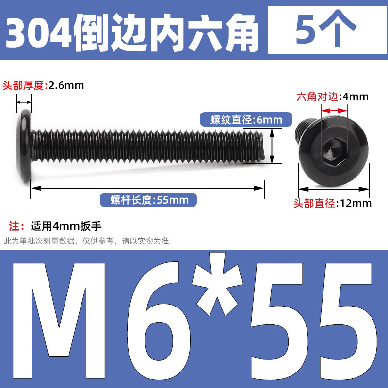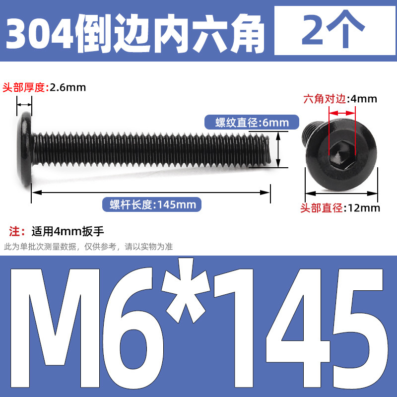 [CB-NLJLS] Black SUS304 Hexagon Socket Flat Head Chamfer Screw M6/M8 Flat Head Chamfer Bolt, Length 6mm-150mm, Furniture Screw