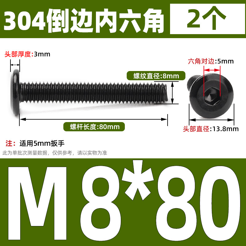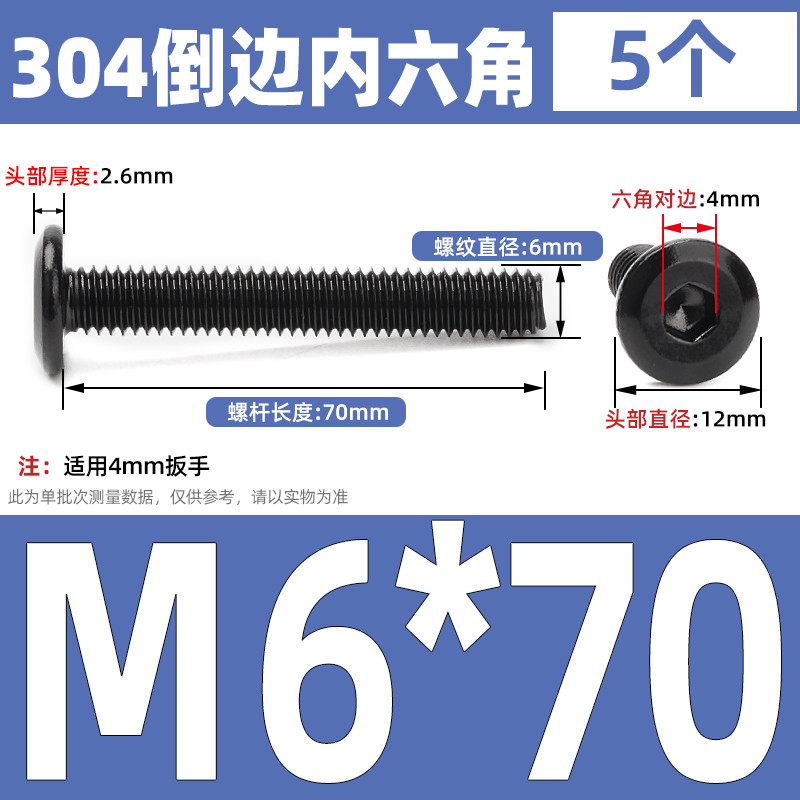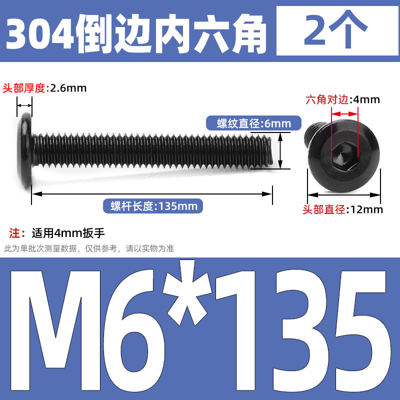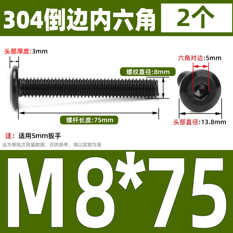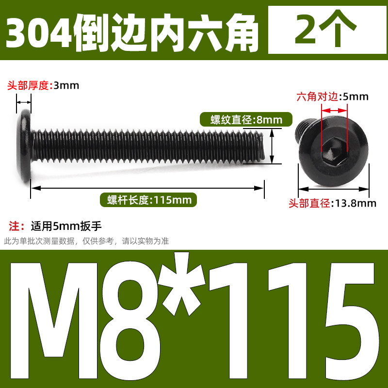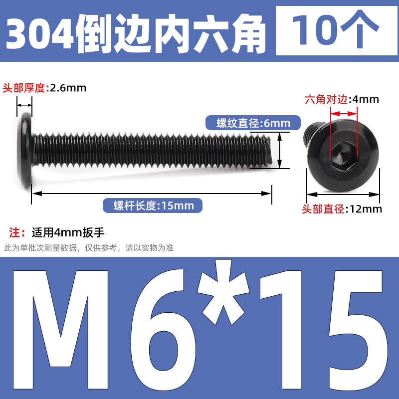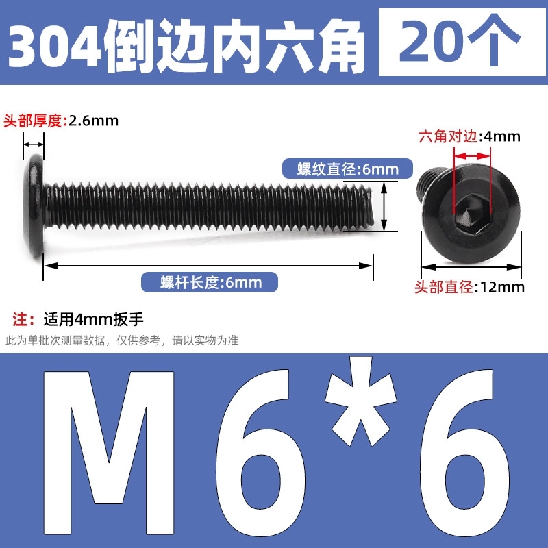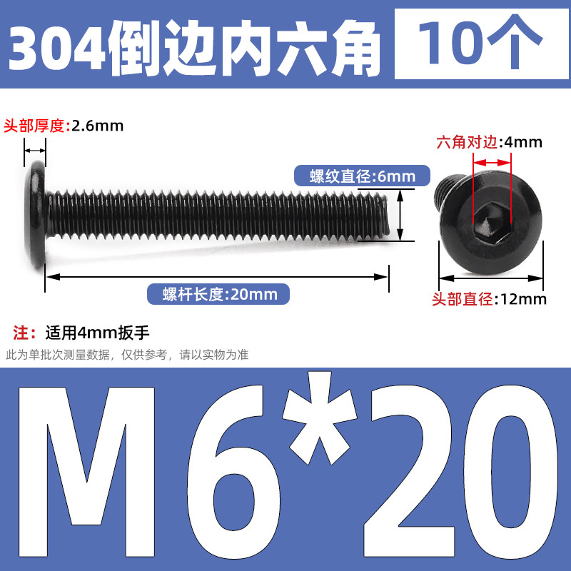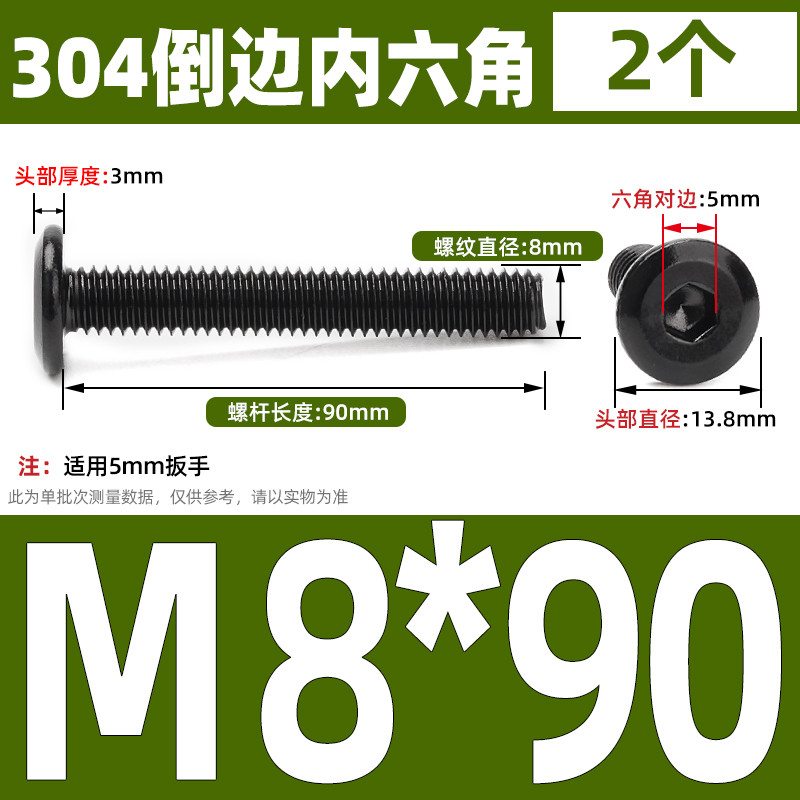 [CB-NLJLS] Black SUS304 Hexagon Socket Flat Head Chamfer Screw M6/M8 Flat Head Chamfer Bolt, Length 6mm-150mm, Furniture Screw