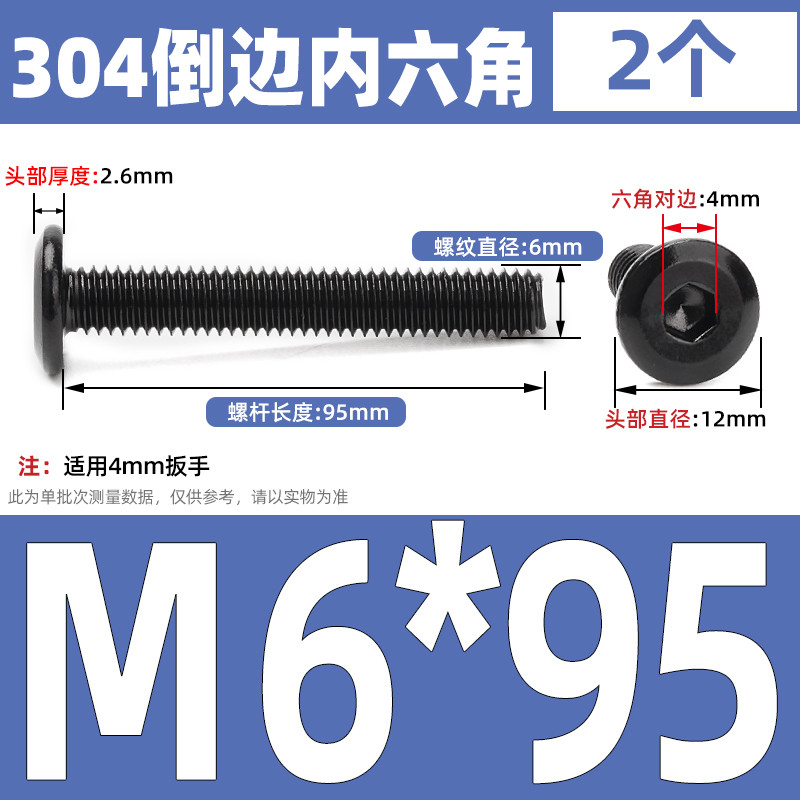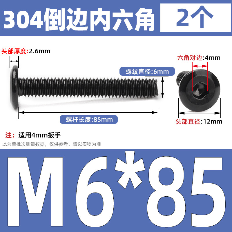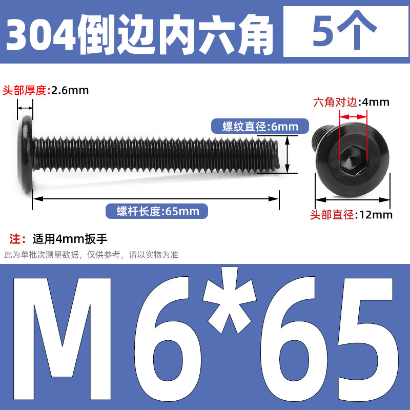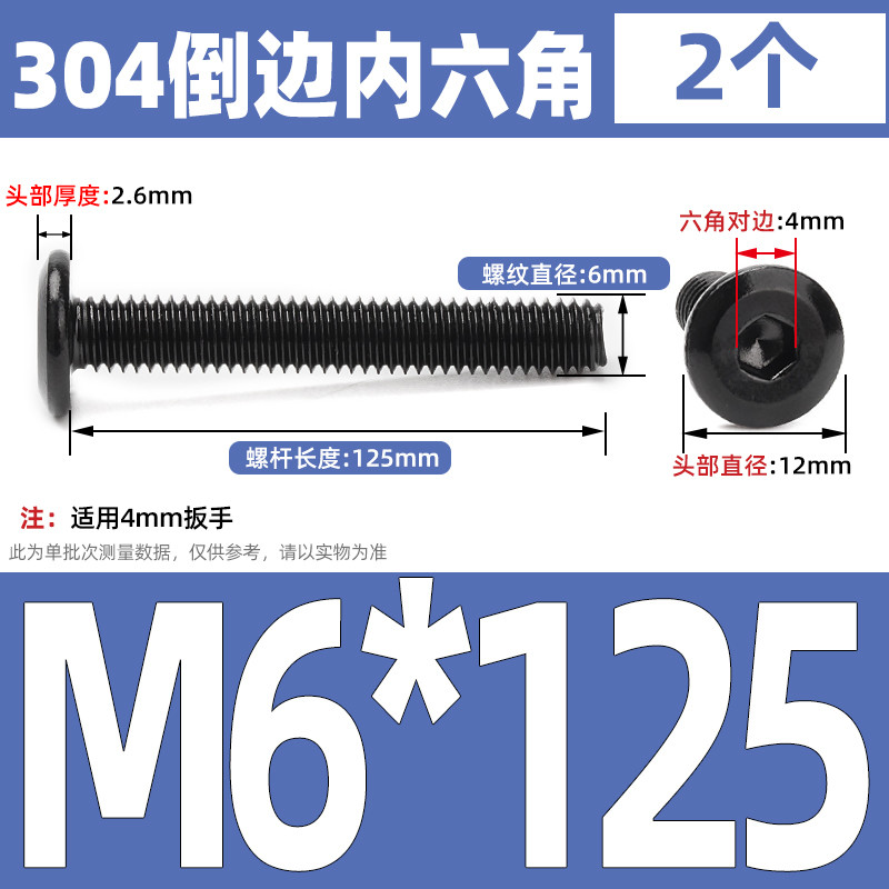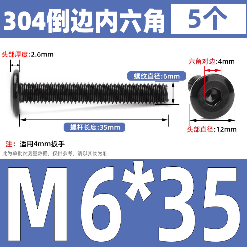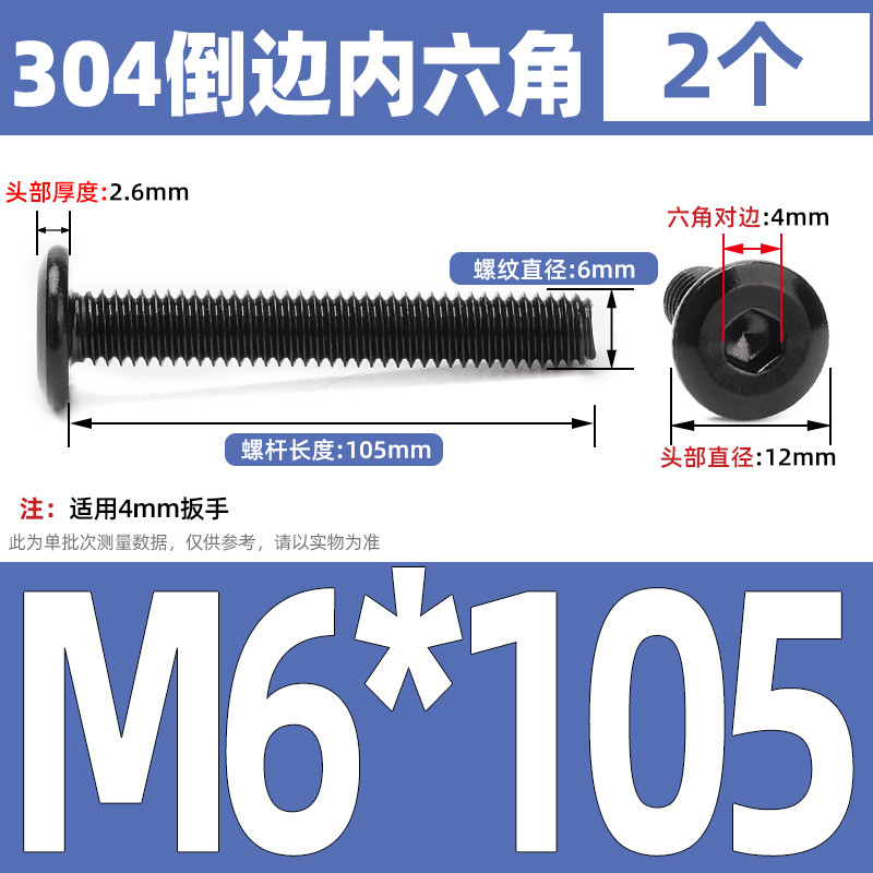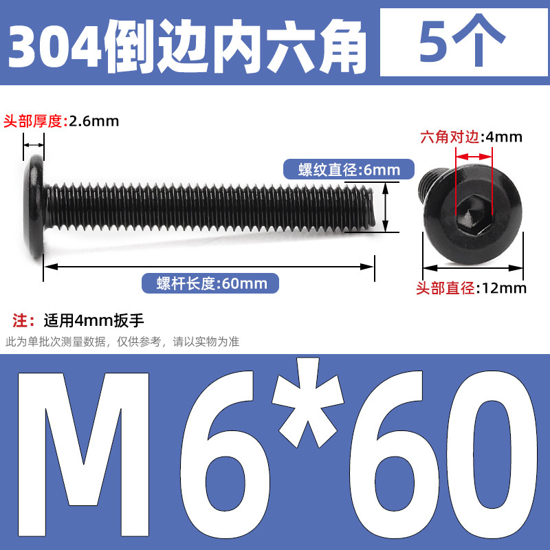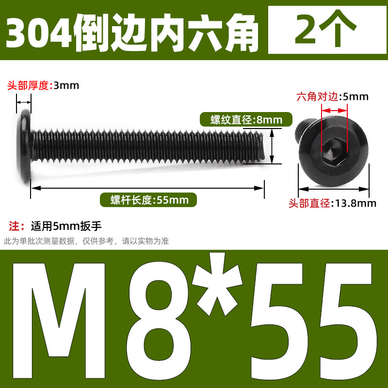 [CB-NLJLS] Black SUS304 Hexagon Socket Flat Head Chamfer Screw M6/M8 Flat Head Chamfer Bolt, Length 6mm-150mm, Furniture Screw