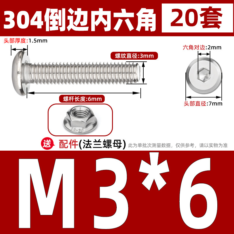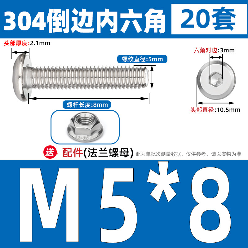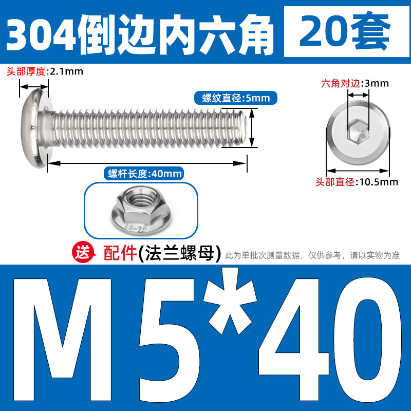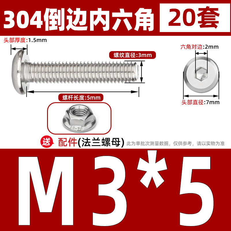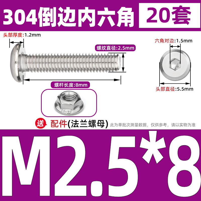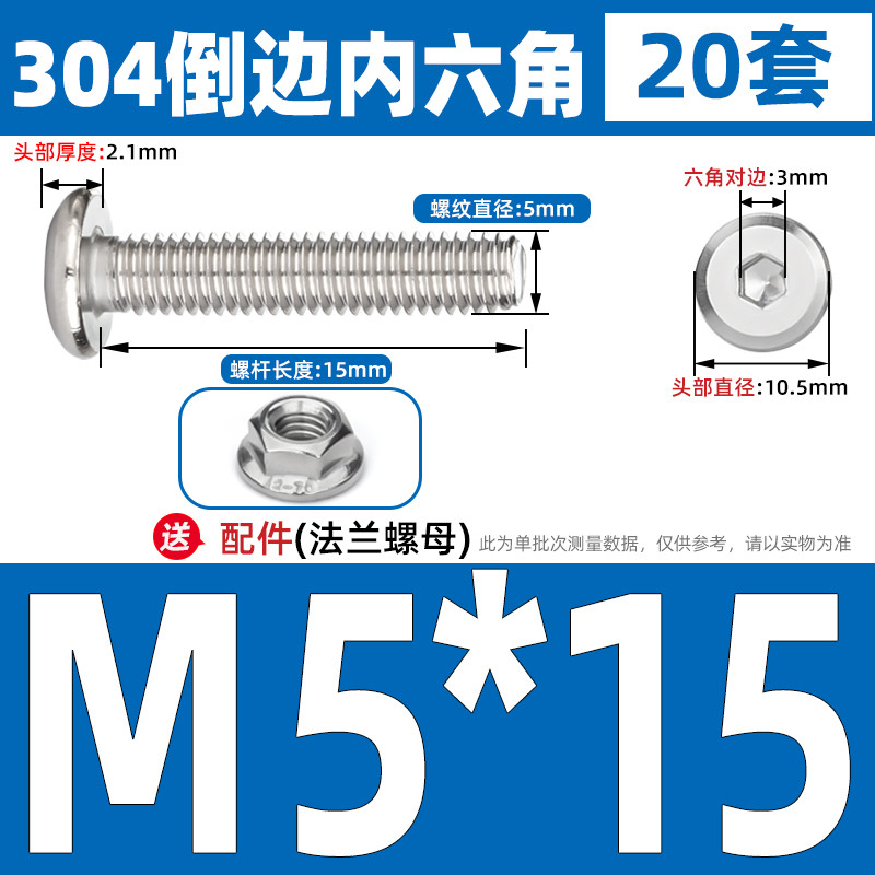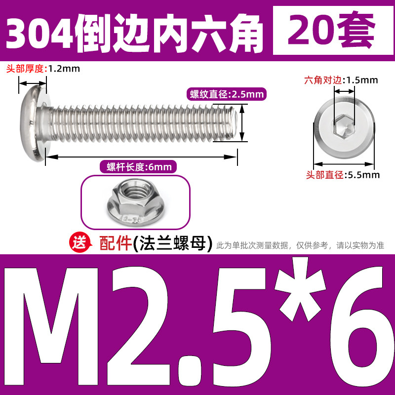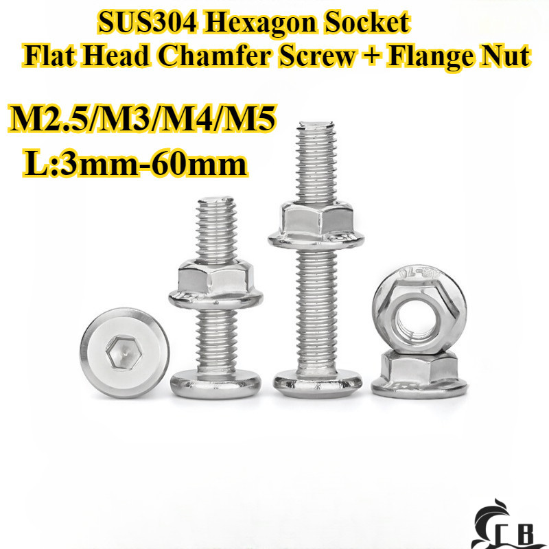 [CB-NLJLS] SUS304, Hexagon Socket Flat Head Chamfer Screw + Flange Nut Two-Piece Set M2.5/M3/M4/M5 Flat Head Chamfer Bolt, Length 3mm-60mm, Furniture Screw