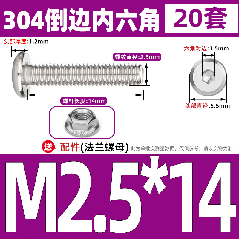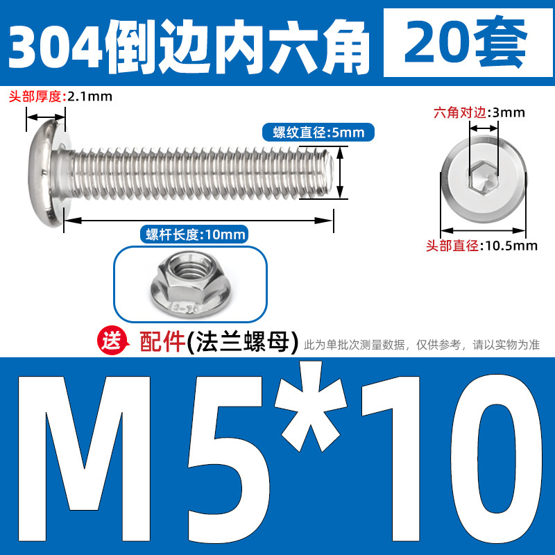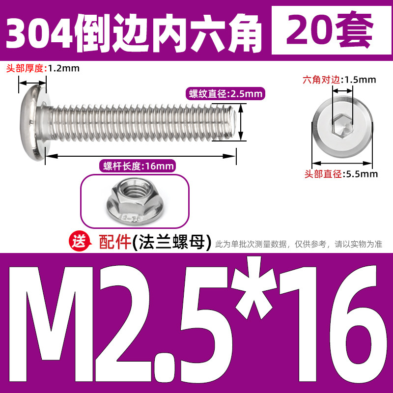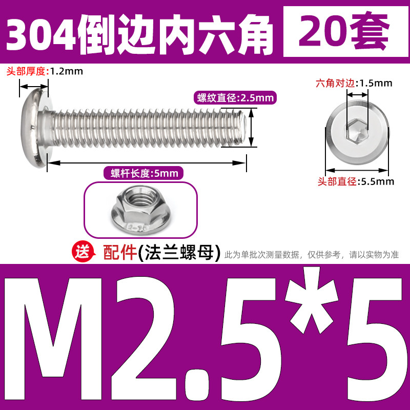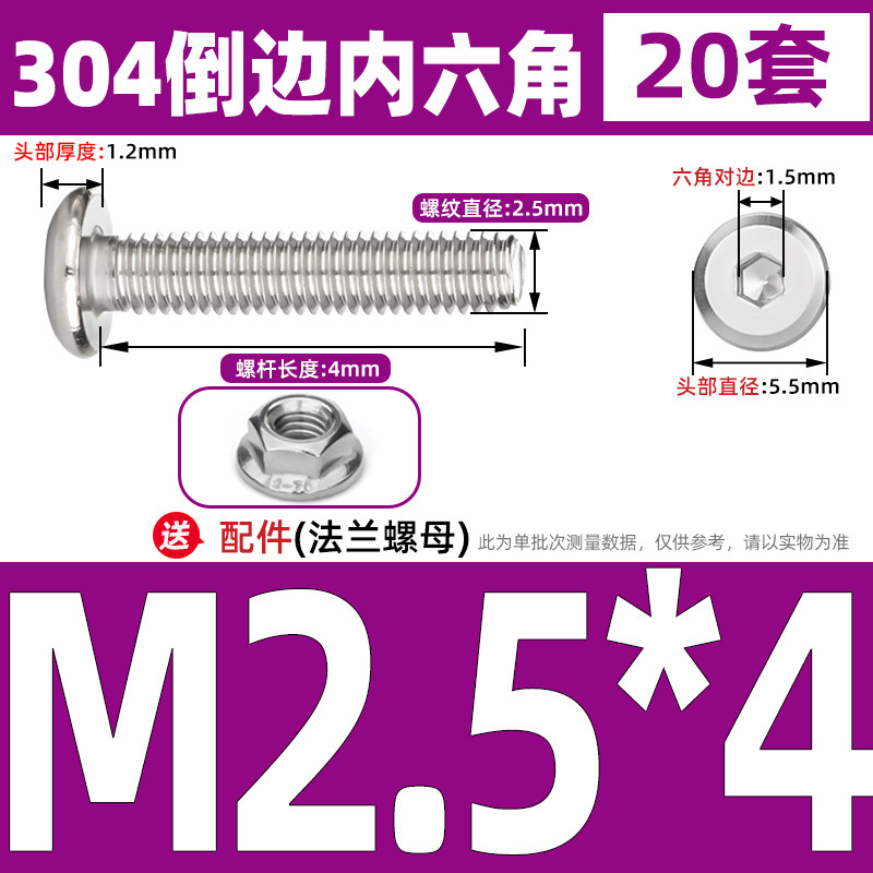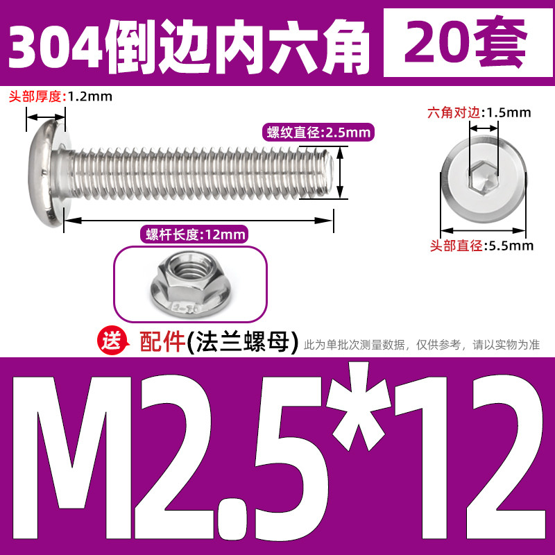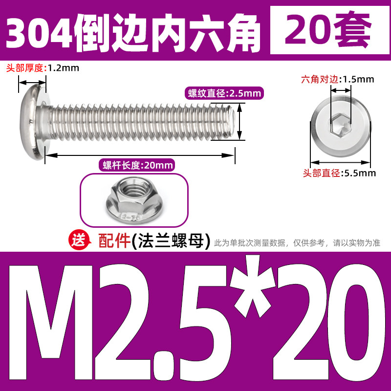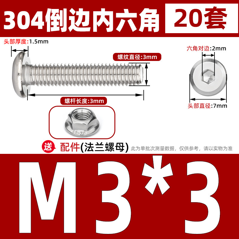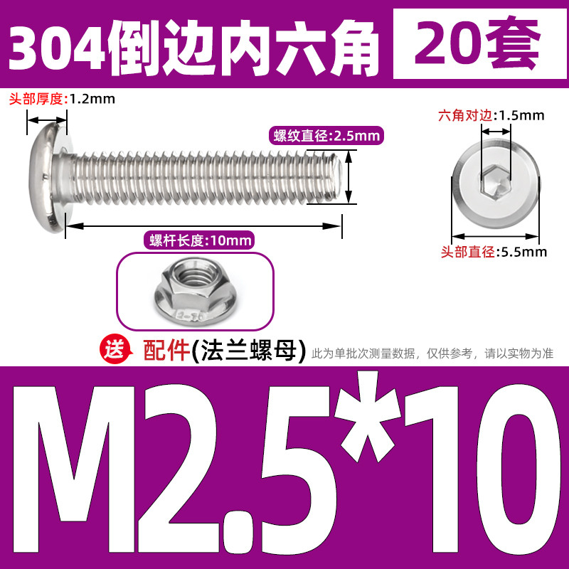 [CB-NLJLS] SUS304, Hexagon Socket Flat Head Chamfer Screw + Flange Nut Two-Piece Set M2.5/M3/M4/M5 Flat Head Chamfer Bolt, Length 3mm-60mm, Furniture Screw