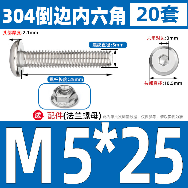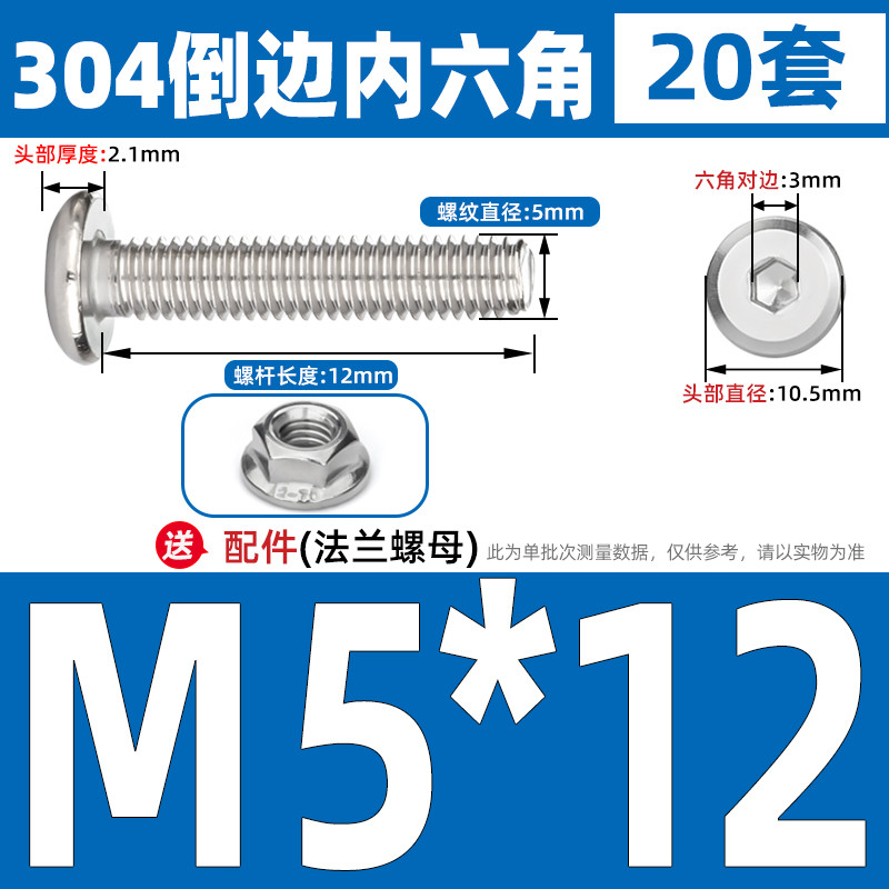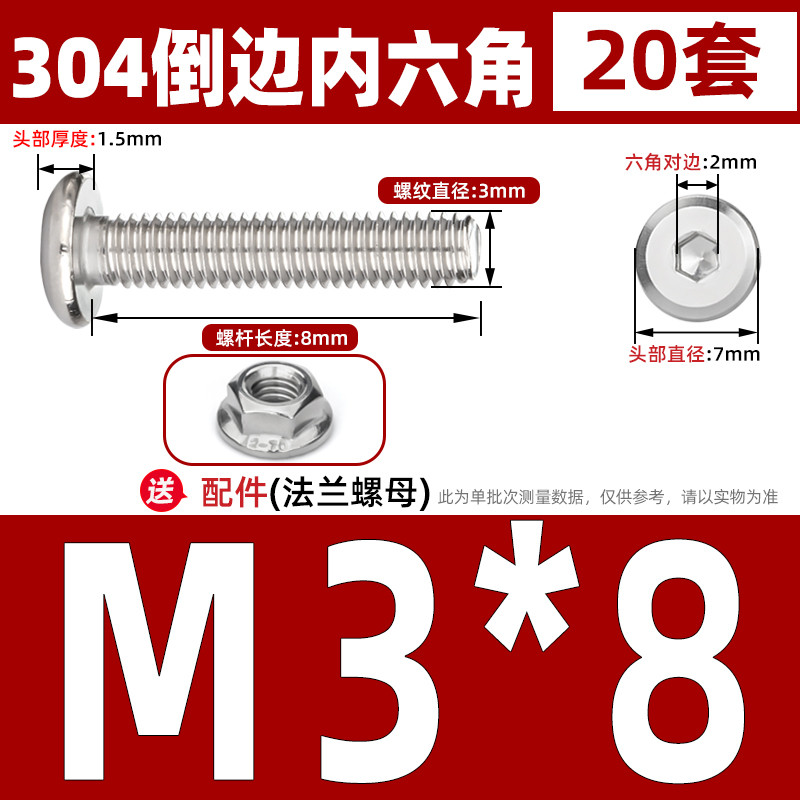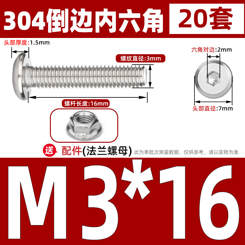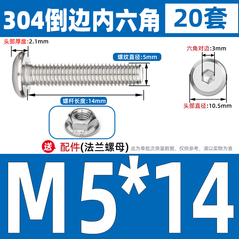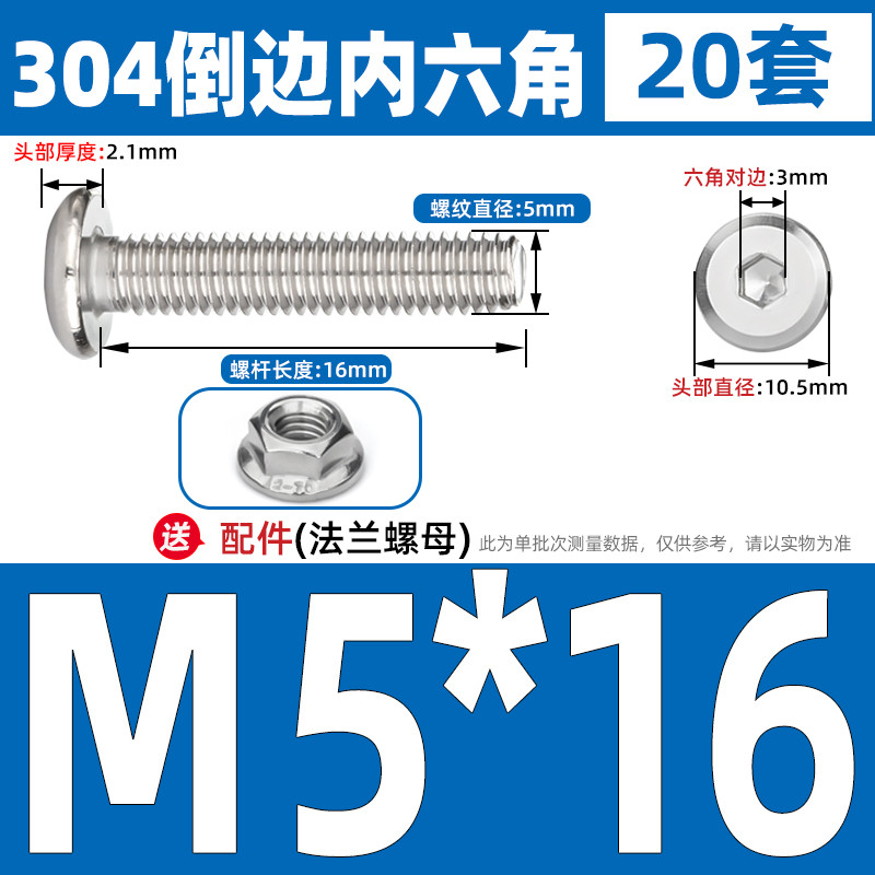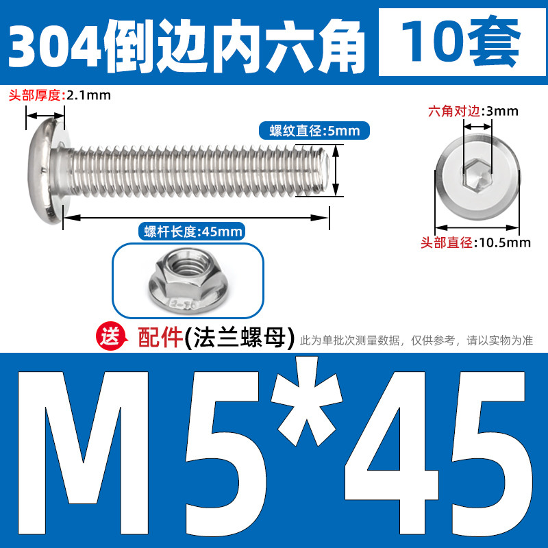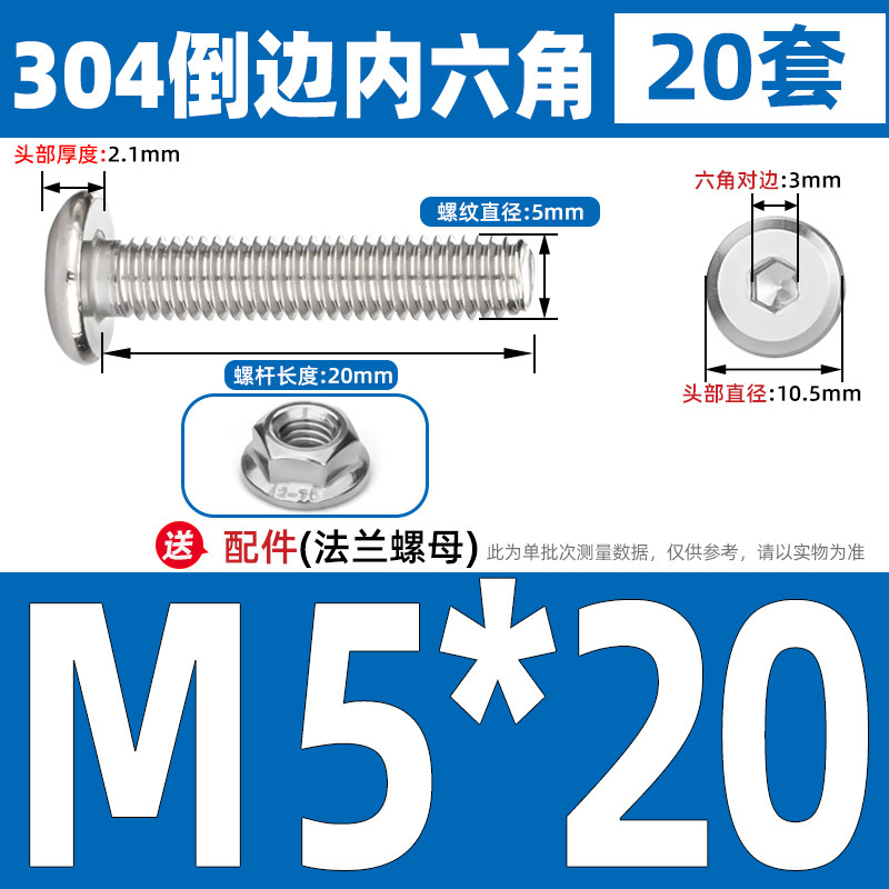 [CB-NLJLS] SUS304, Hexagon Socket Flat Head Chamfer Screw + Flange Nut Two-Piece Set M2.5/M3/M4/M5 Flat Head Chamfer Bolt, Length 3mm-60mm, Furniture Screw