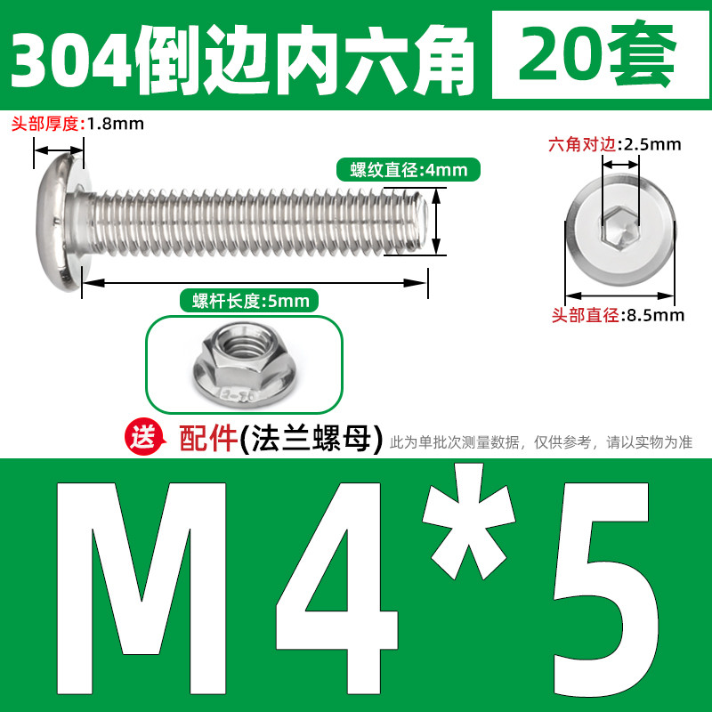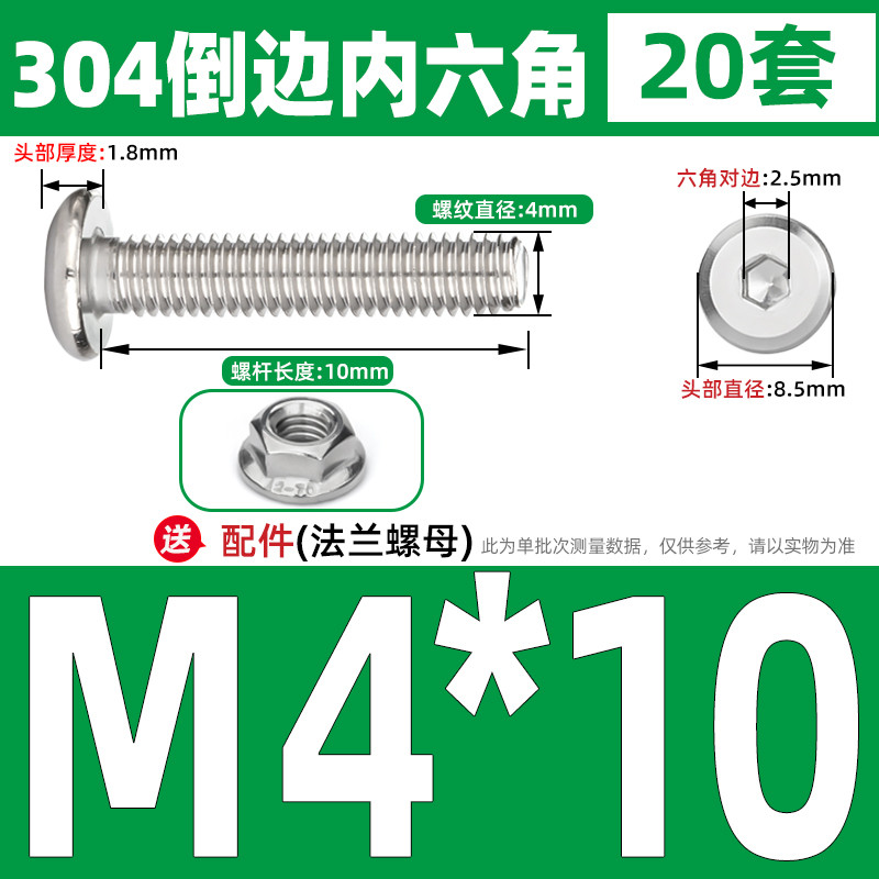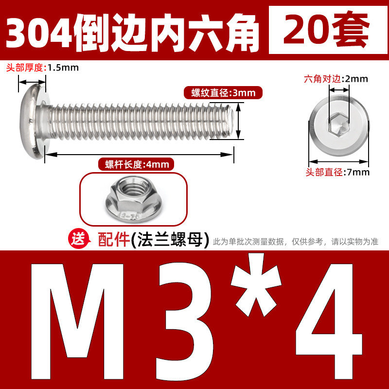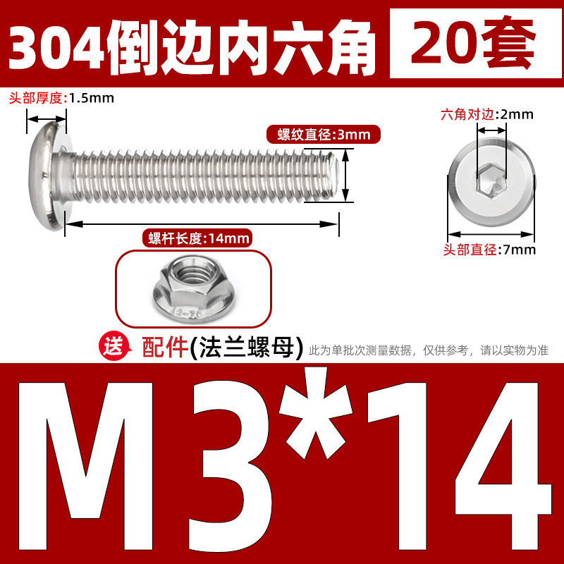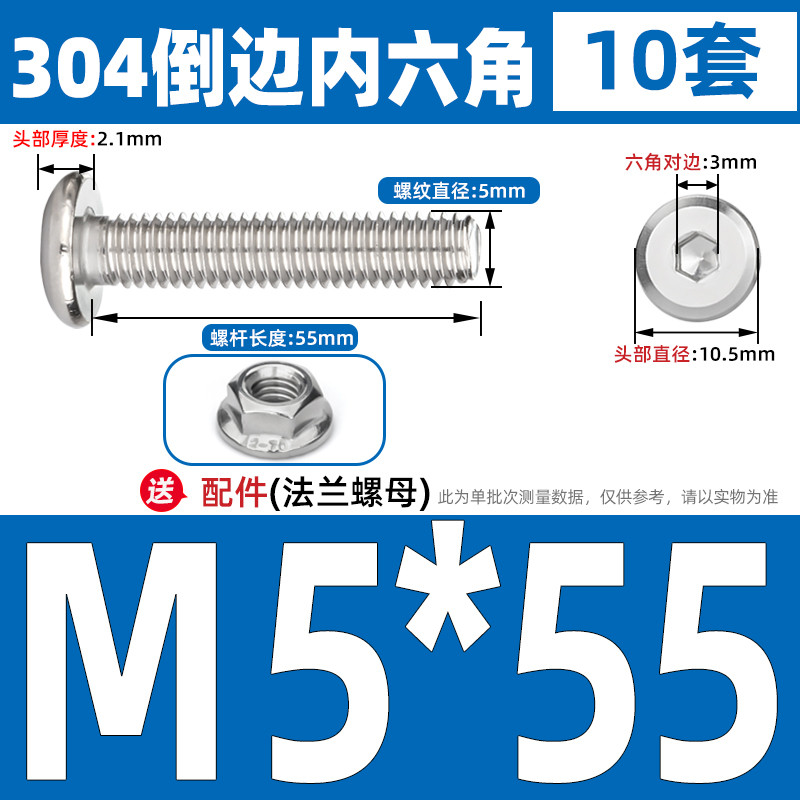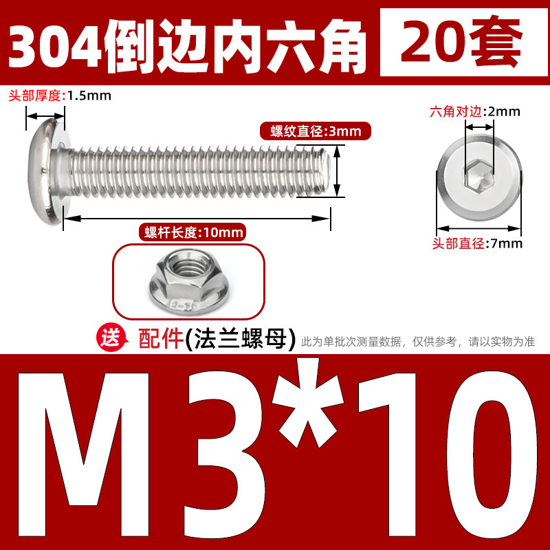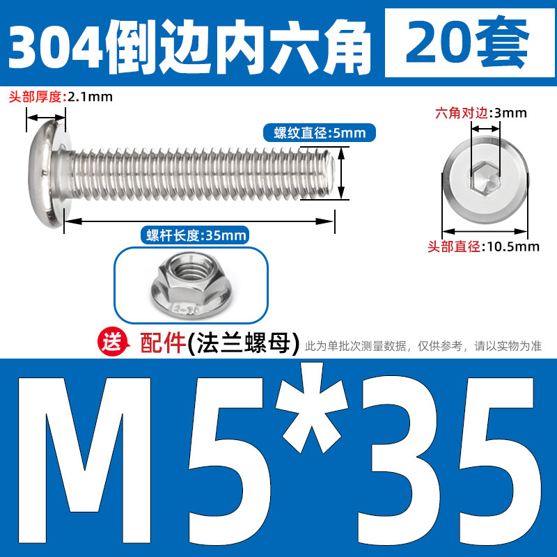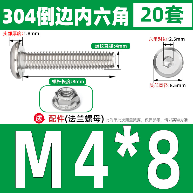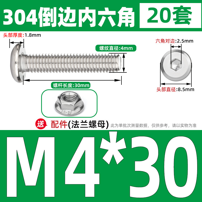 [CB-NLJLS] SUS304, Hexagon Socket Flat Head Chamfer Screw + Flange Nut Two-Piece Set M2.5/M3/M4/M5 Flat Head Chamfer Bolt, Length 3mm-60mm, Furniture Screw