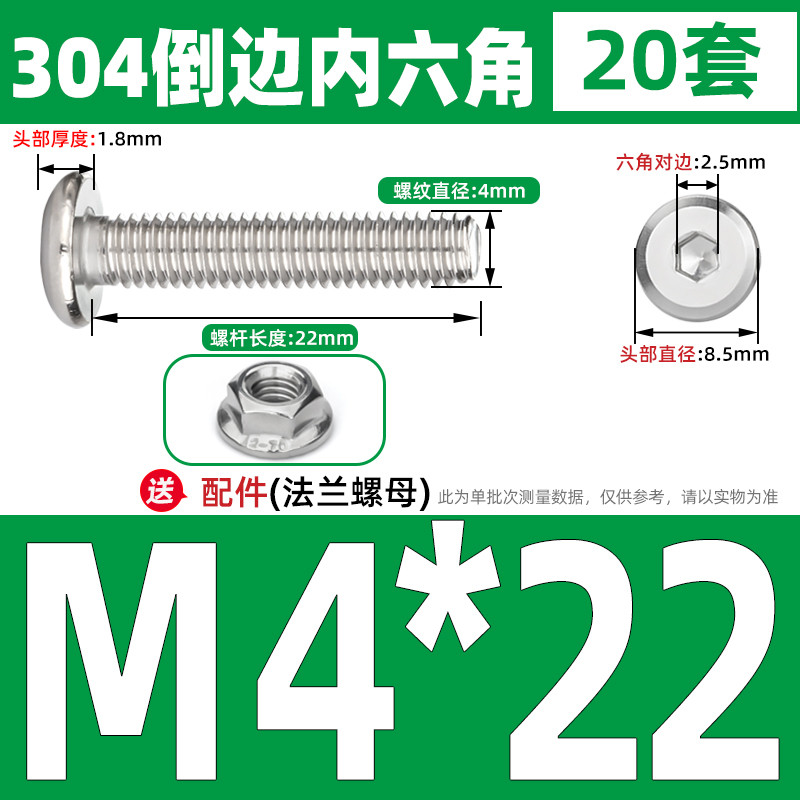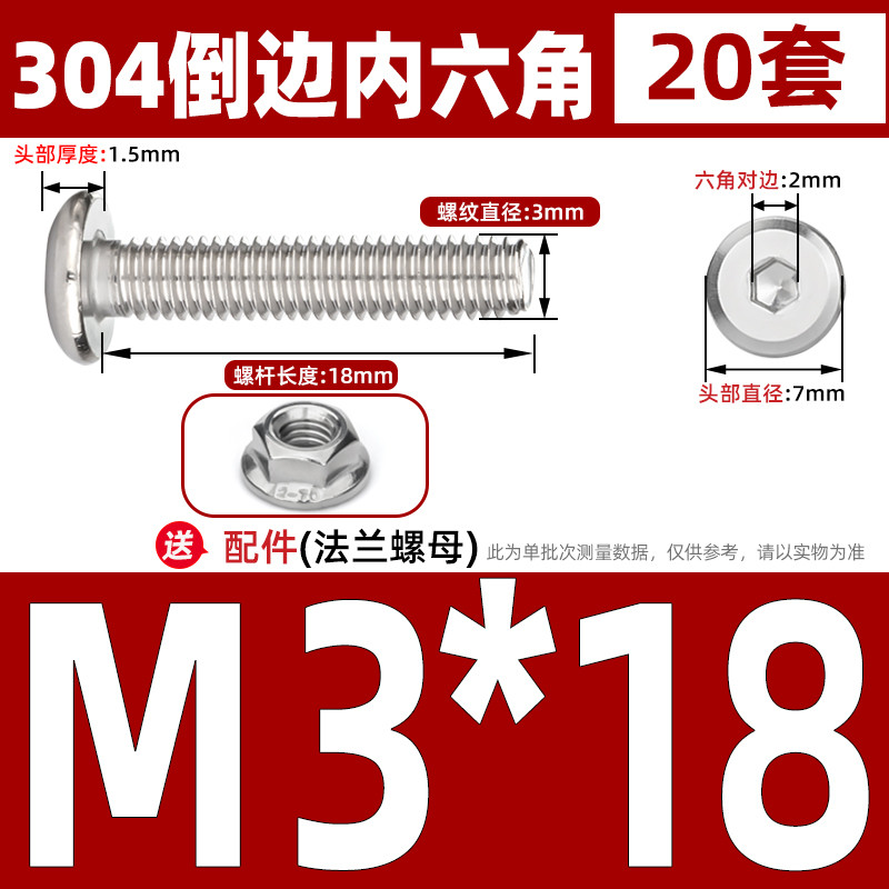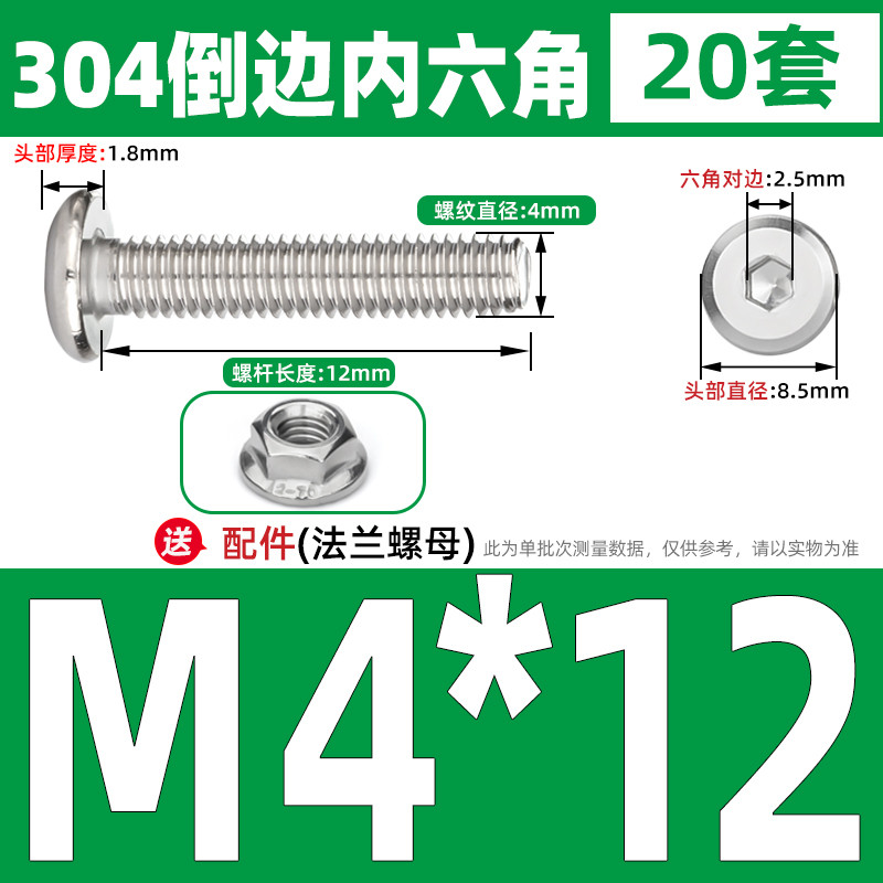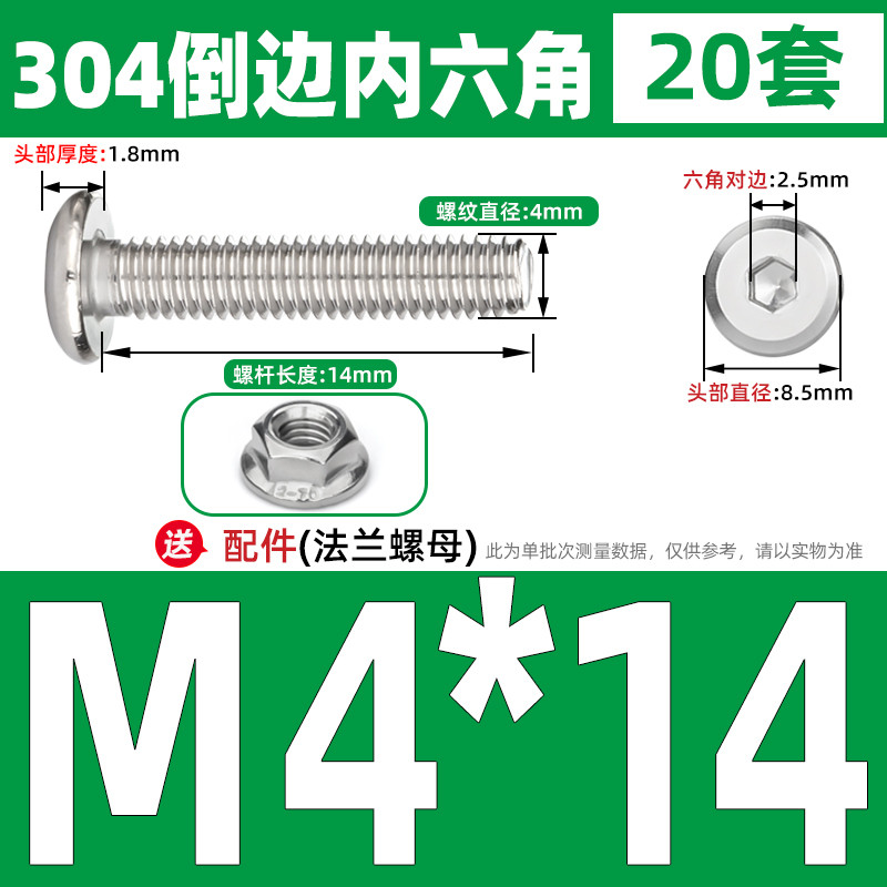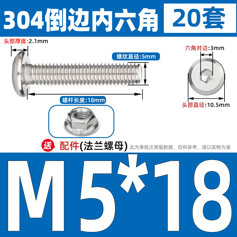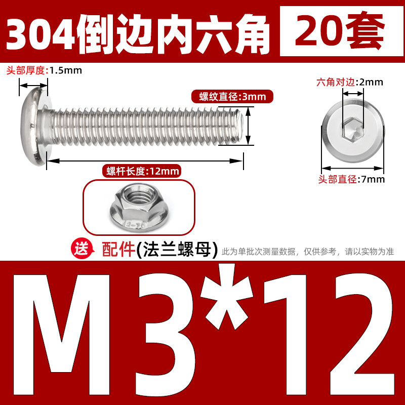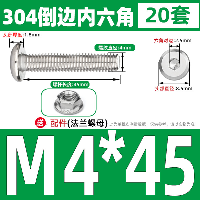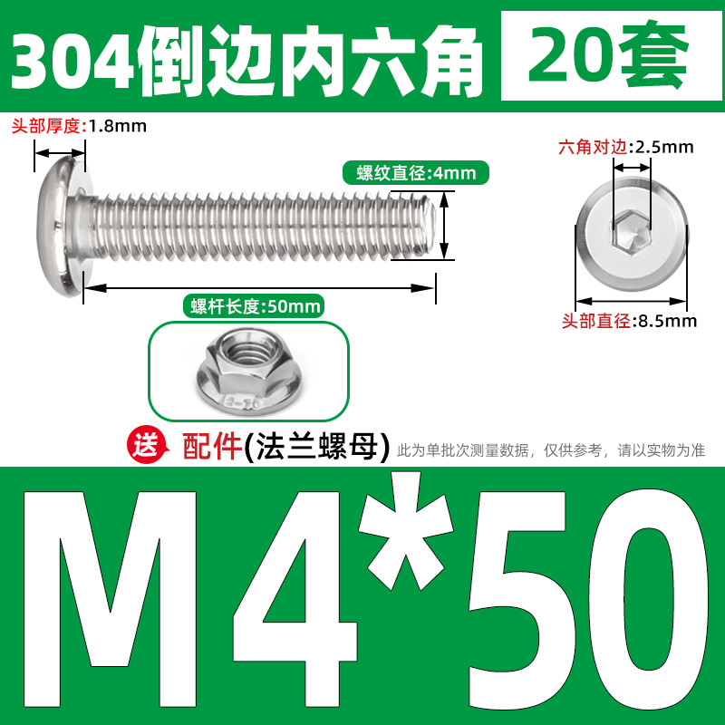 [CB-NLJLS] SUS304, Hexagon Socket Flat Head Chamfer Screw + Flange Nut Two-Piece Set M2.5/M3/M4/M5 Flat Head Chamfer Bolt, Length 3mm-60mm, Furniture Screw