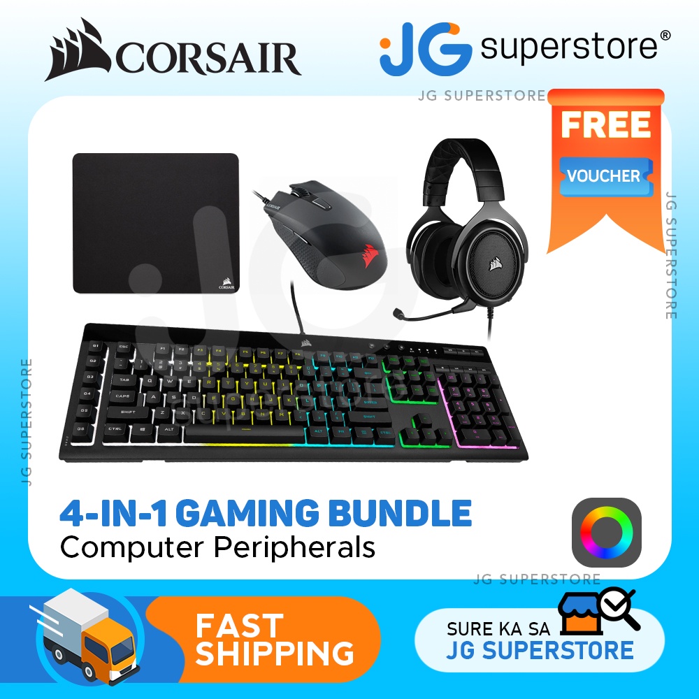 [CLEARANCE] CORSAIR 4-in-1 Gaming Bundle, Keyboard, Mouse, Stereo Headphones and Mousepad