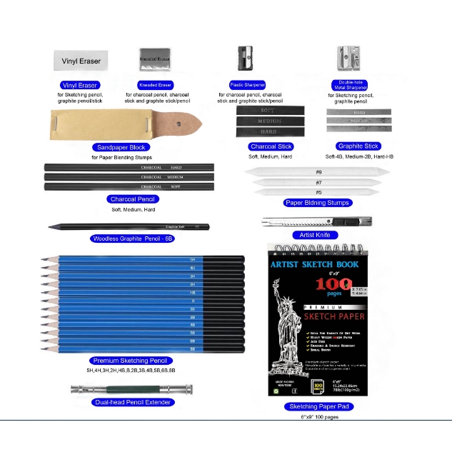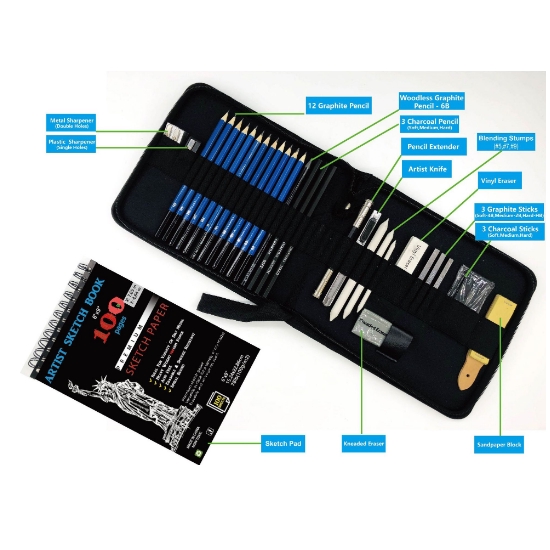 [COD] 35pcs Sketching Pencils Drawing and Sketch Kit Set Charcoal Pencil Art Painting Artists Kit