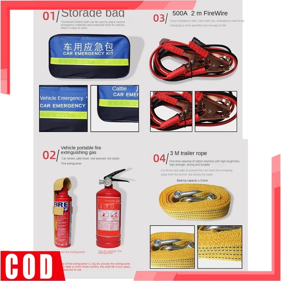 [COD] Car mounted fire extinguisher, outdoor portable car emergency rescue kit, car set