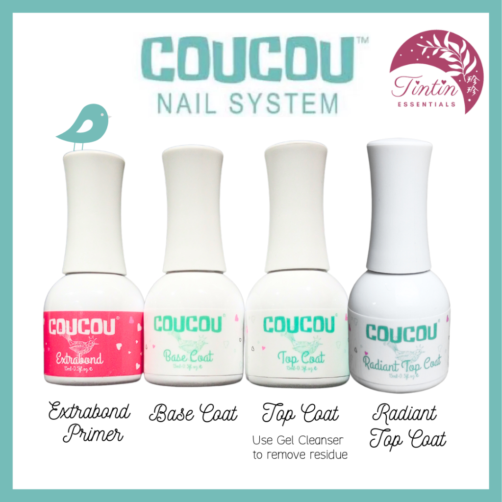 [COD] Coucou UV Nail Gel System 15ML Extrabond Primer Base Coat No Wipe Non Wipe Top Coat Gel Polish