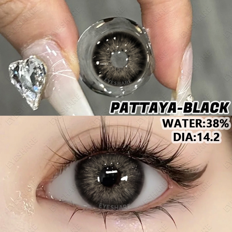 {COD}-Eyeshare Pattaya Black Contact Lenses 1Pair 14.2mm Mini Color Contact Lenses Yearly Softlens