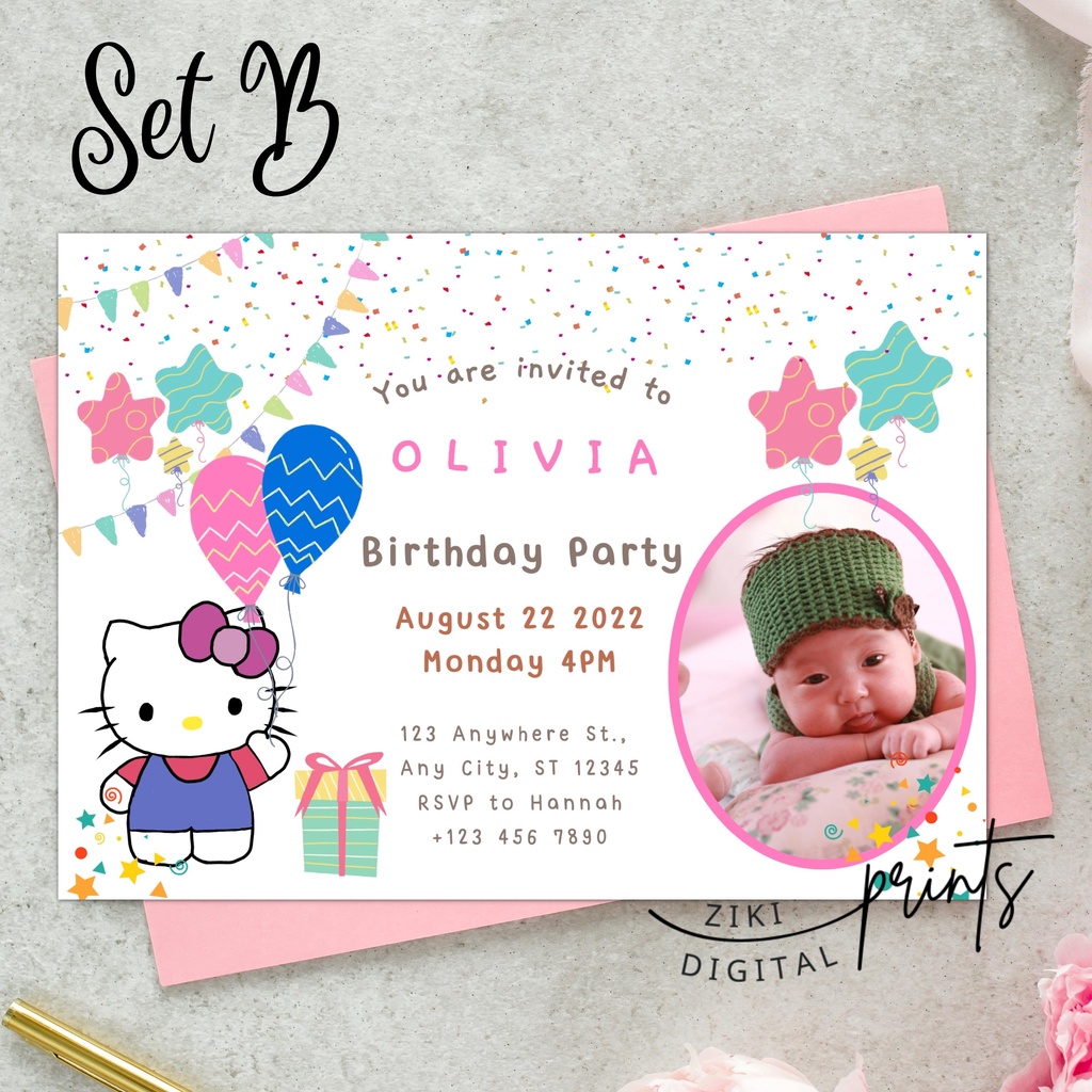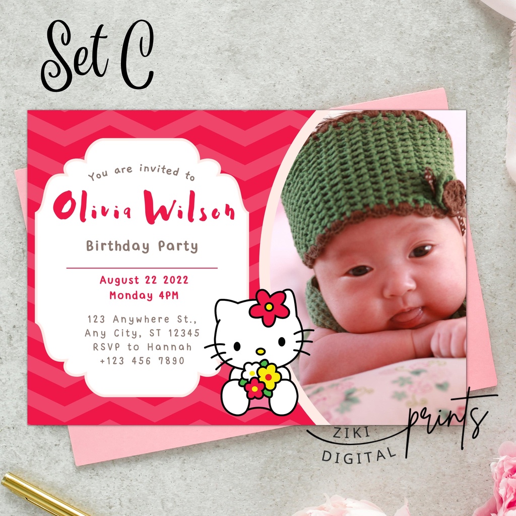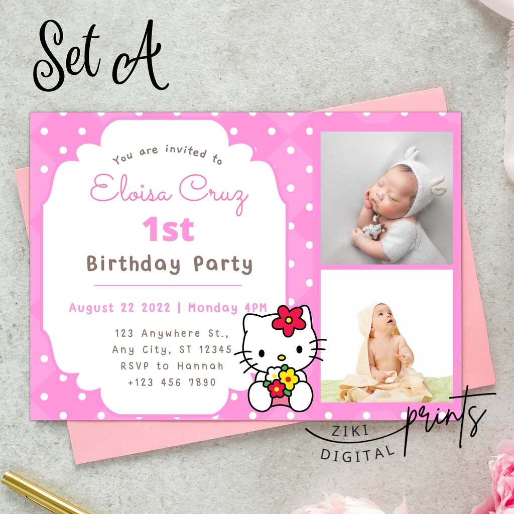 [COD] Hello Kitty 1st Birthday / Baptismal Christening Baptismal Invitation Card Size Customized