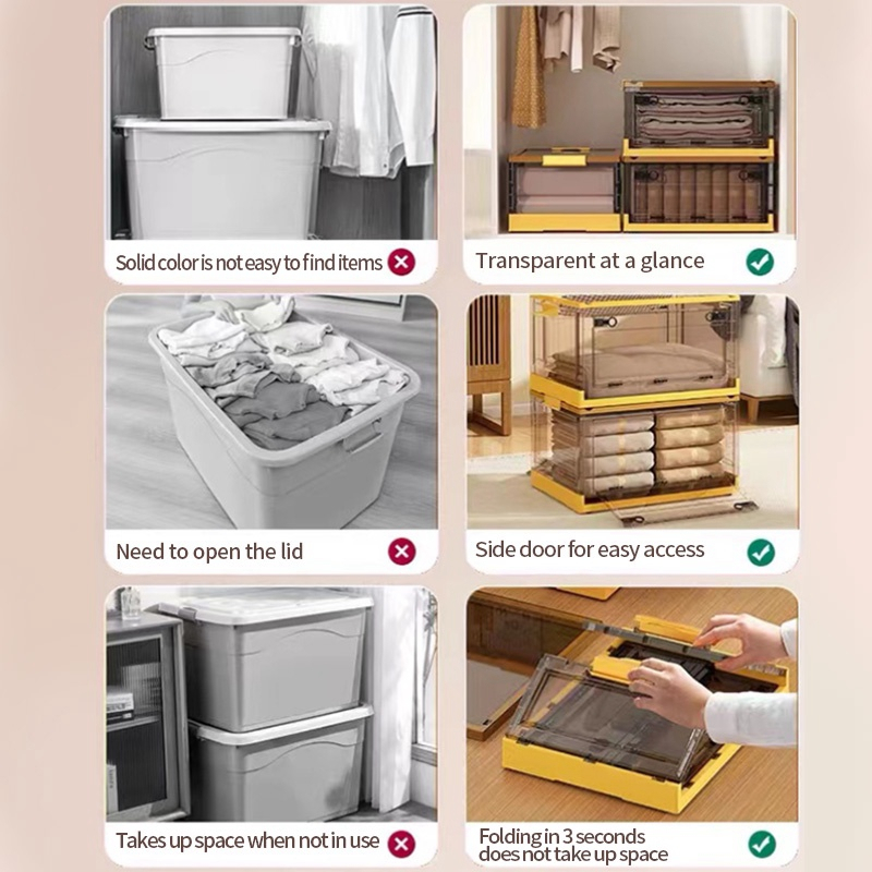[COD]PoP-Transparent Foldable storage box waterproof plastic clothes box with wheels Not occupying a position Stackable height