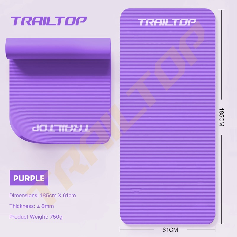 [COD] Trailtop Yoga Mat For Workout NBR Gym Mat With Bag 8/10MM Thick Non Slip Exercise Mat 5 Colors