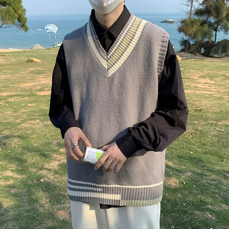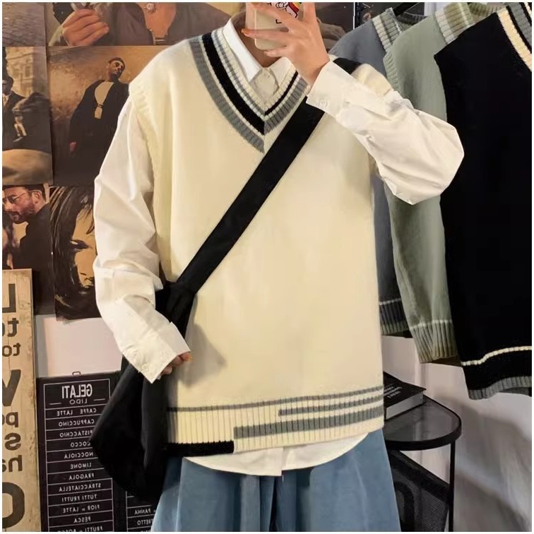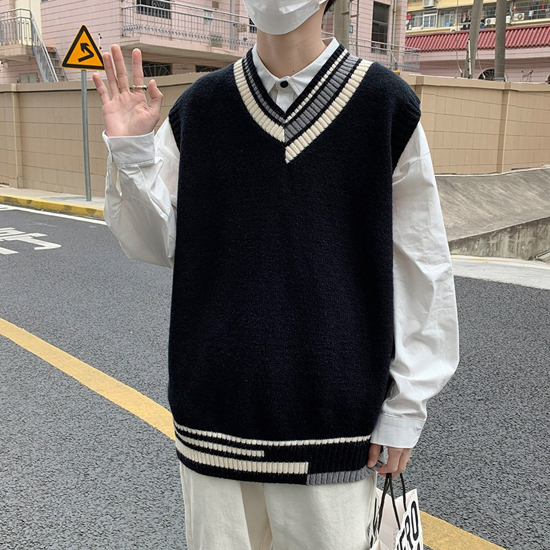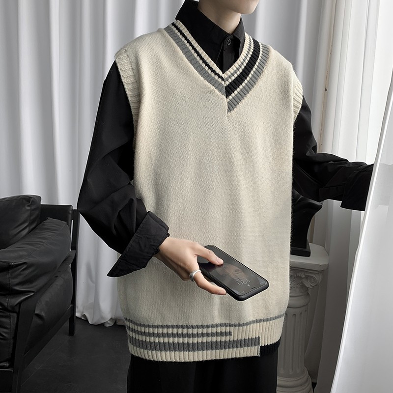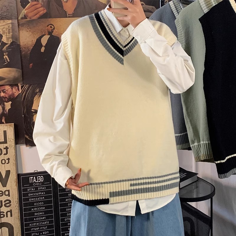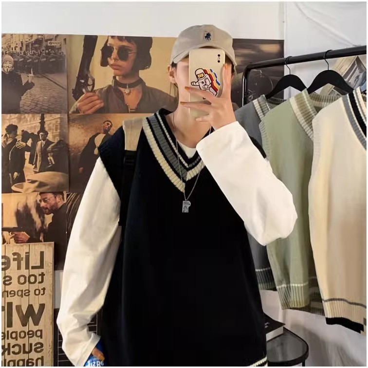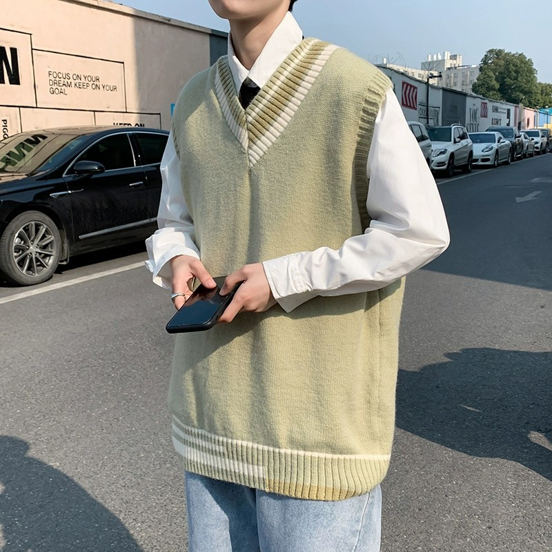 [COD] V-neck Vest Knitted men's sweaters vest loose casual knit Unisex vest Korean style Knitted Top