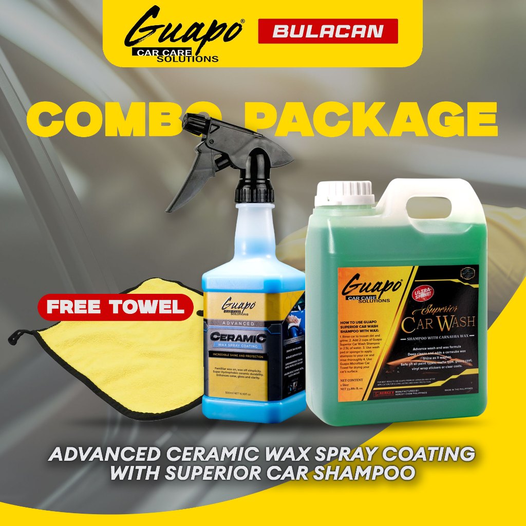 [COMBO] Guapo Ceramic Spray Coating w/ Car Wash Shampoo +FREE Towel Exterior Cleaning Kit