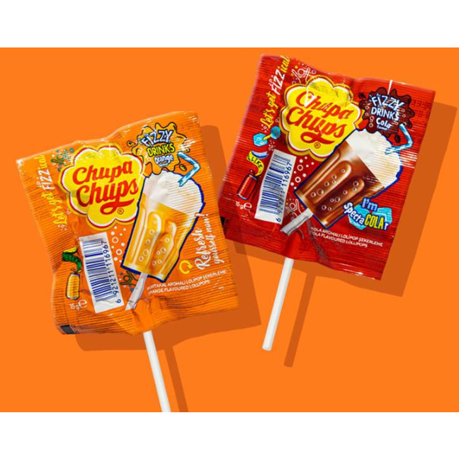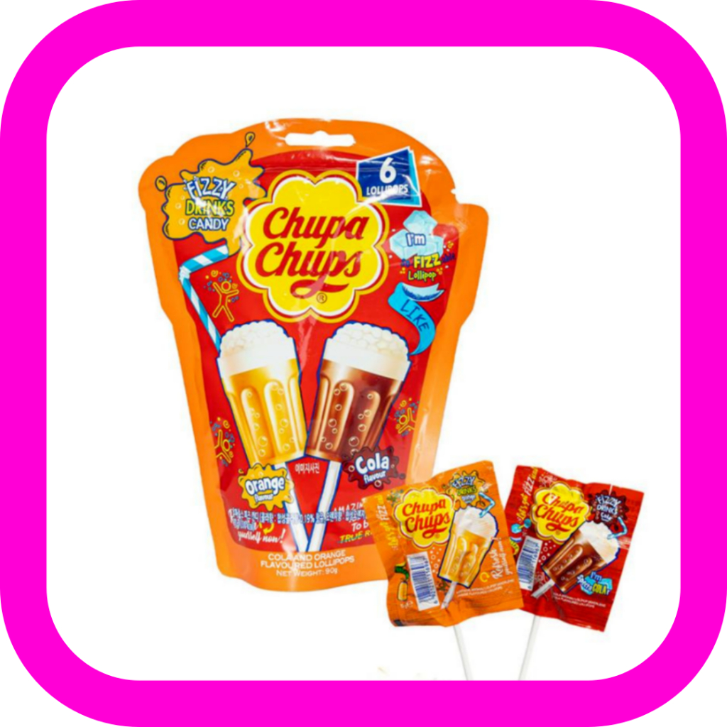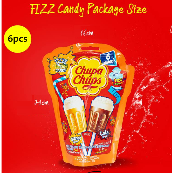 [Chupa Chups] Fizzy Lollipops 6 pieces 90g (Cola / Orange) / Chupa Chups Fizzy Drinks Candy / Coke / Orange