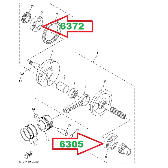 > Crankshaft Bearing (Segunyal Bearing) MIO SPORTY/MIO AMORE/MIO SOULTY/SOUL CARB (93306-305X3)