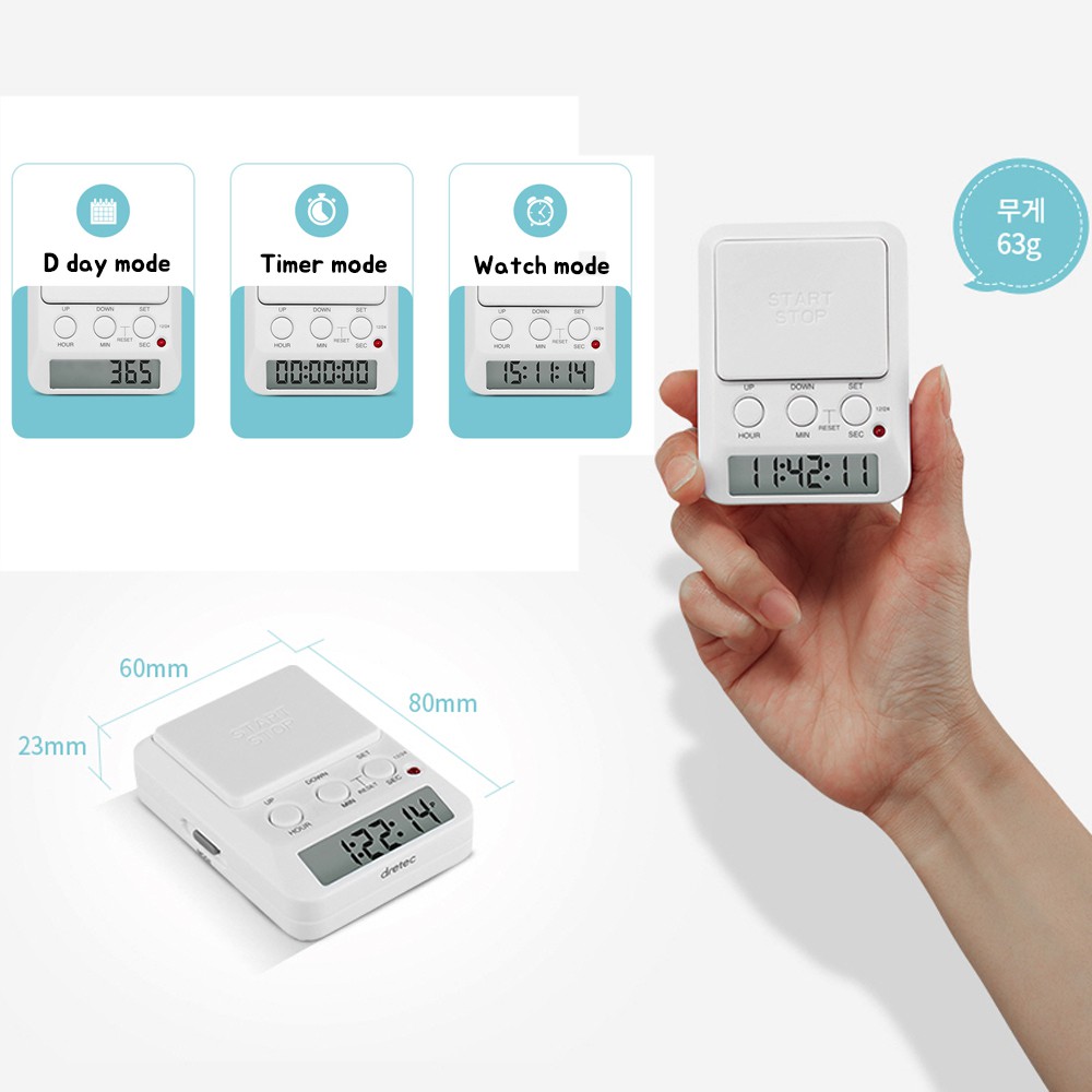 [DRETEC] T186 T580 Study Timer Stop Watch LED Silent D Day Mini Clock Korean Stationery