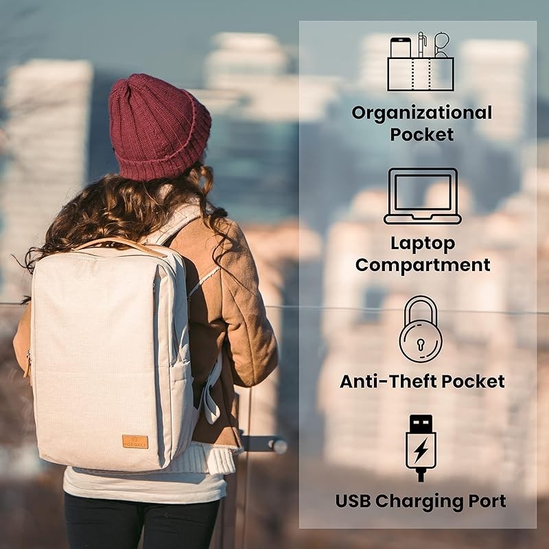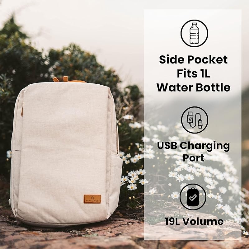 [Direct From Japan]Nordace Siena - 15.6" Laptop Backpack with USB Charging Port for Unisex Waterproof Everyday Travel Work, Beige, 19L