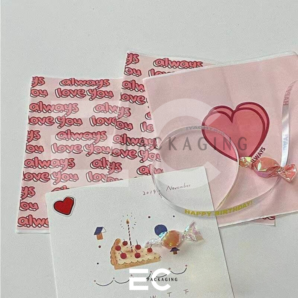 [EC] 100Pcs Love Heart Greaseproof Paper Bag Pouch Food Wrapper Sandwich Pouch Fried Chicken Pouch