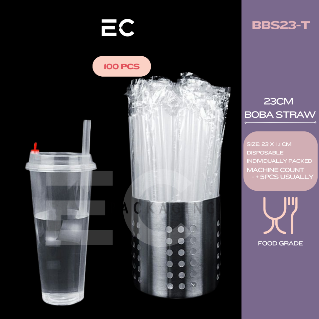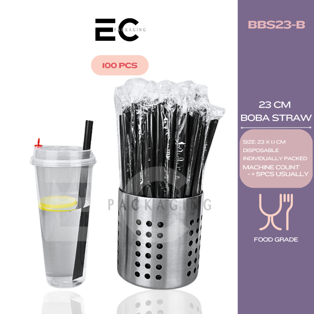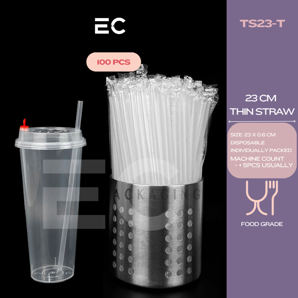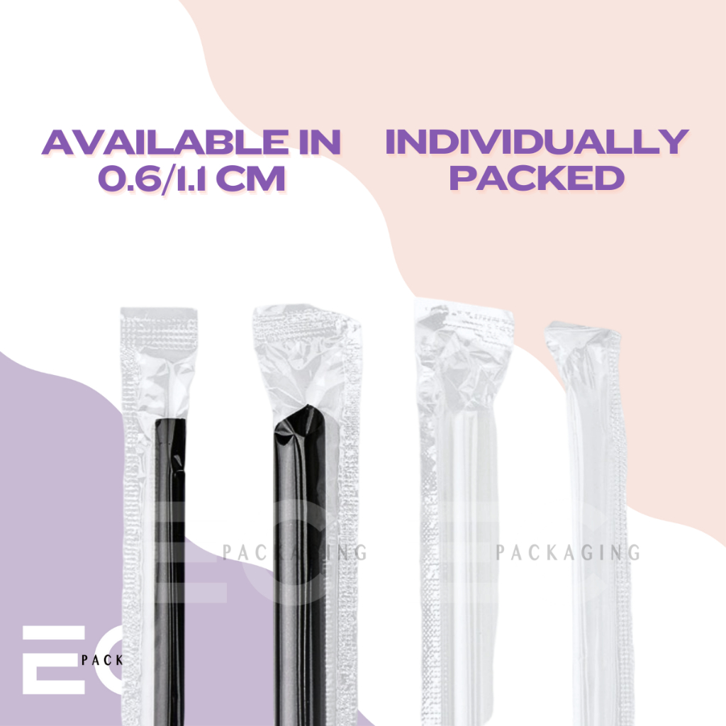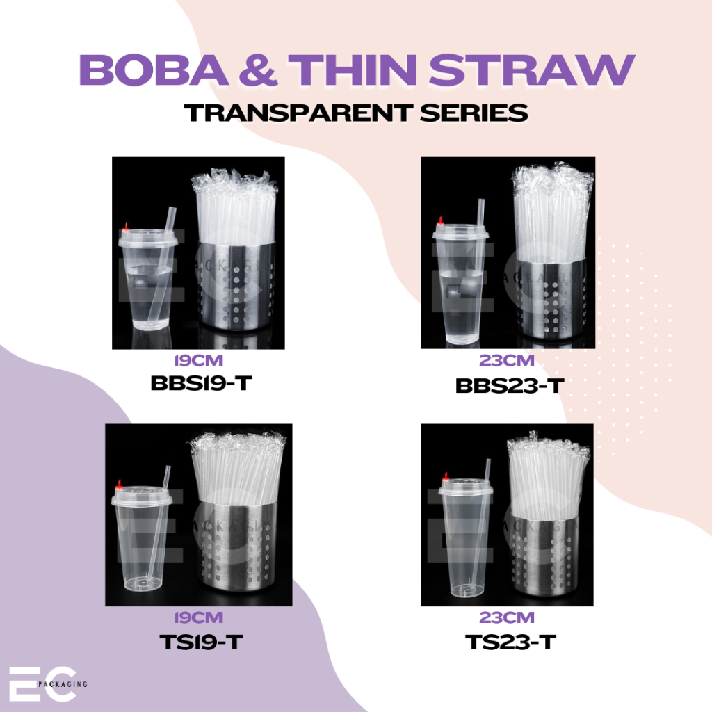 [EC] 100Pcs PP Straw Individually Packed 19CM 23CM Thin Straw Boba Straw For Milk tea/ Boba Tea
