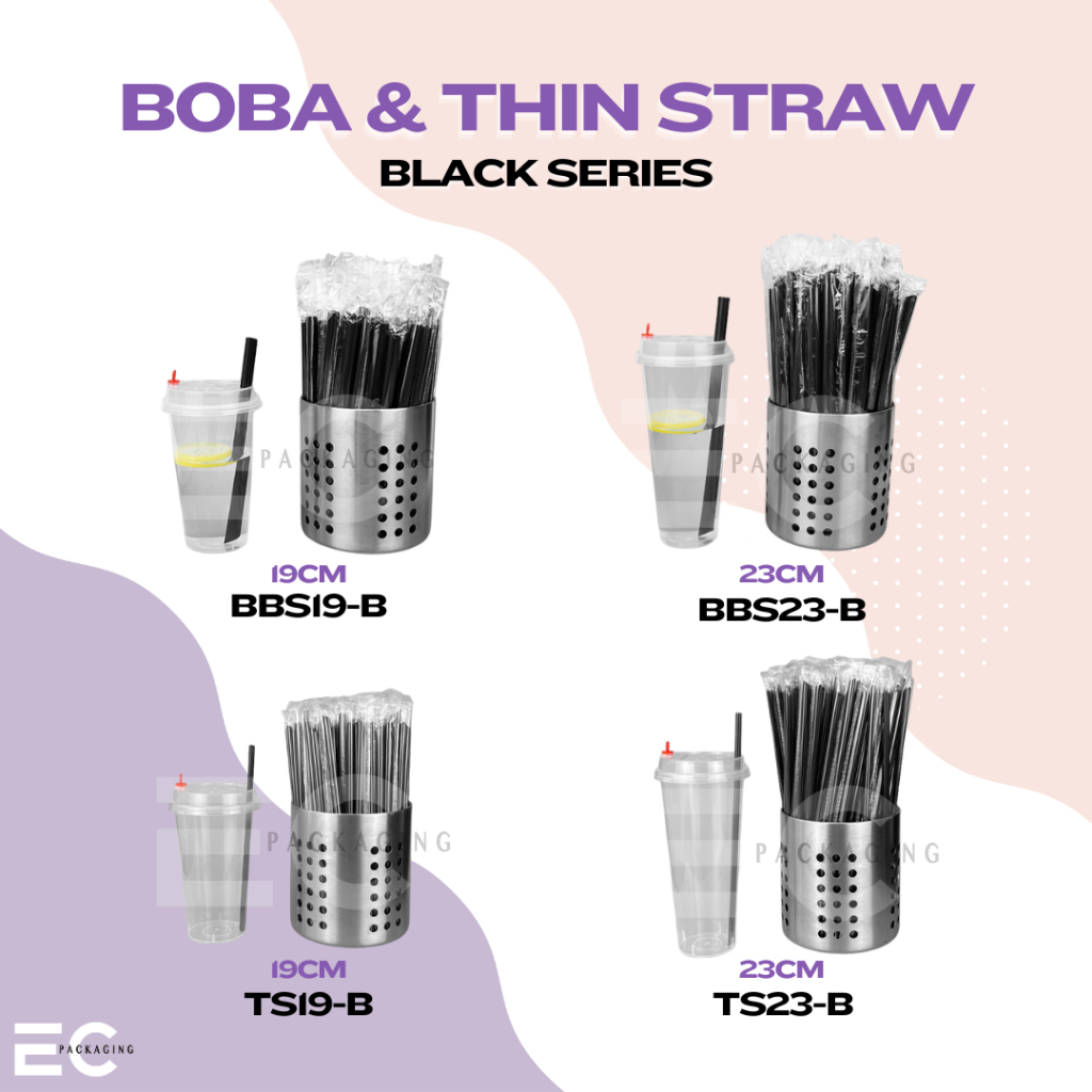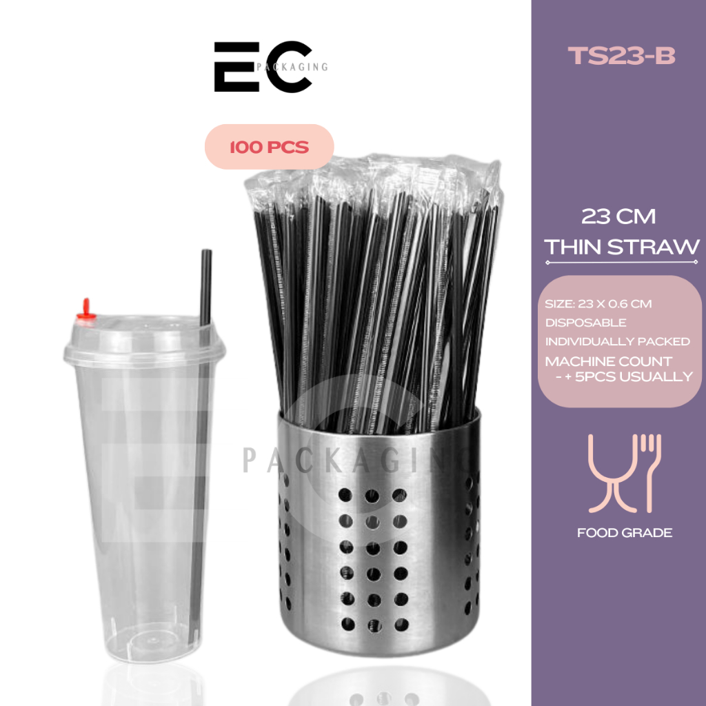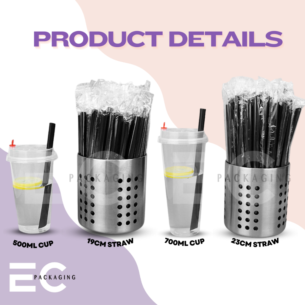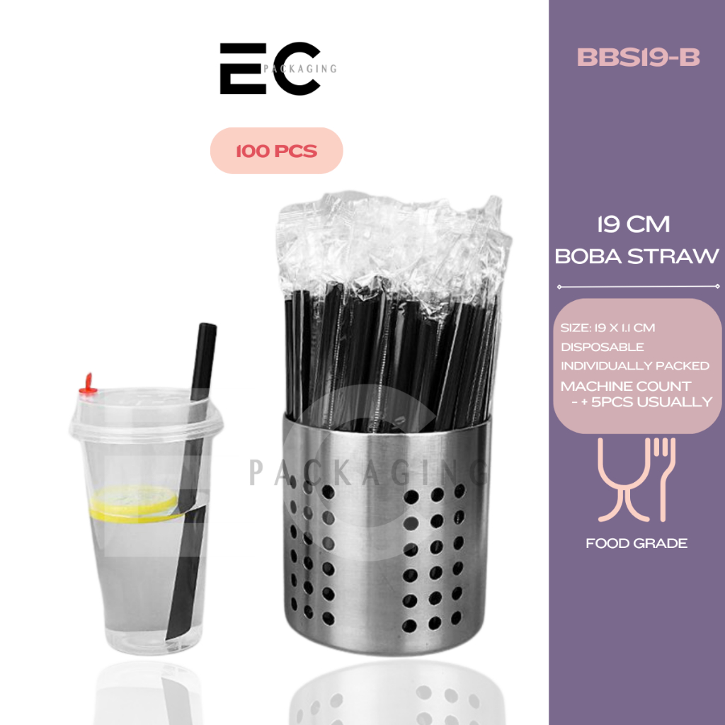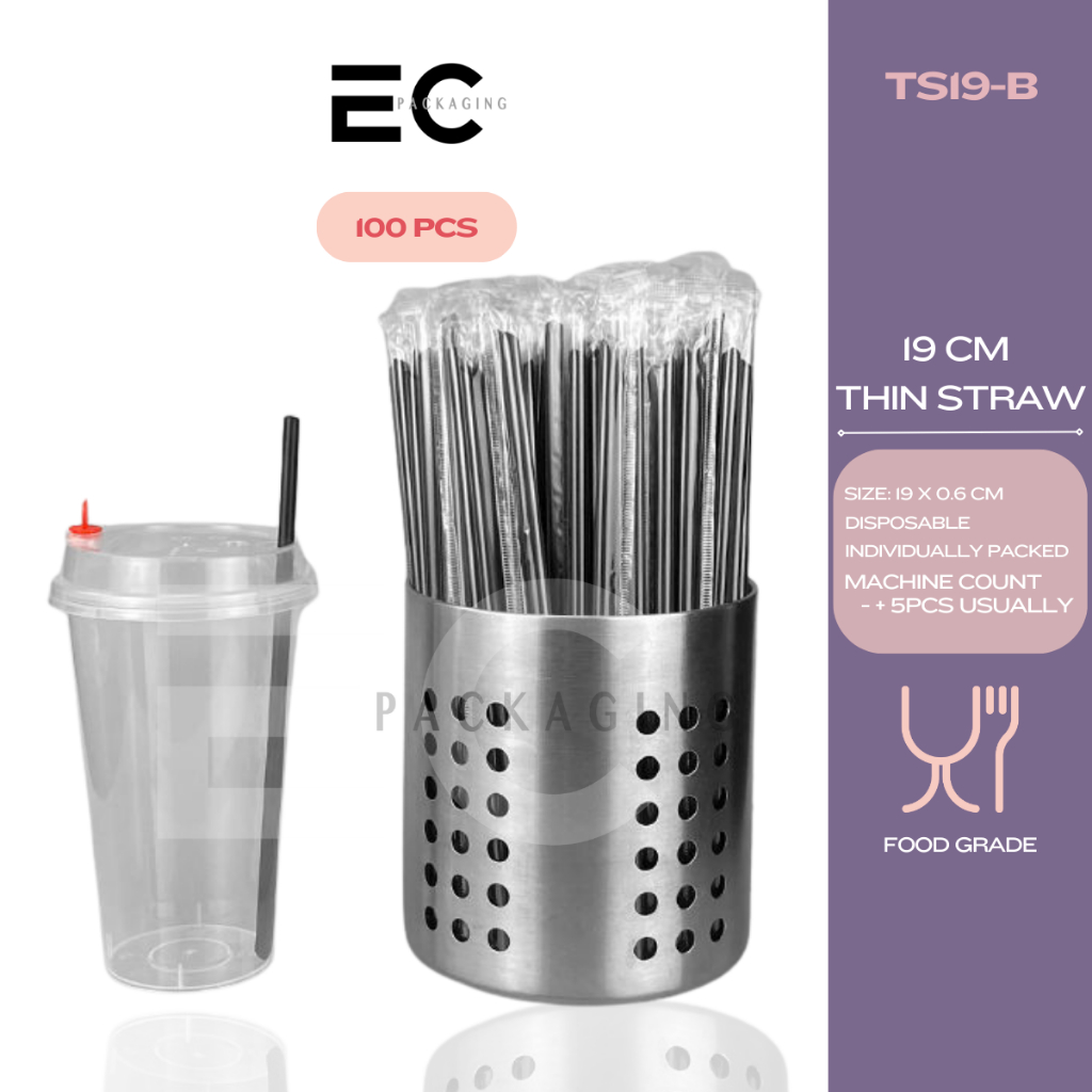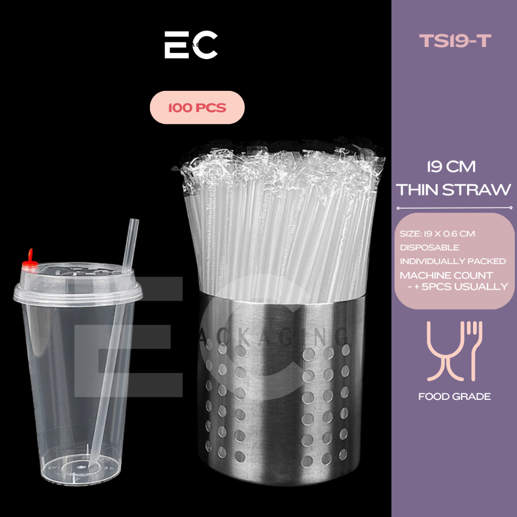 [EC] 100Pcs PP Straw Individually Packed 19CM 23CM Thin Straw Boba Straw For Milk tea/ Boba Tea