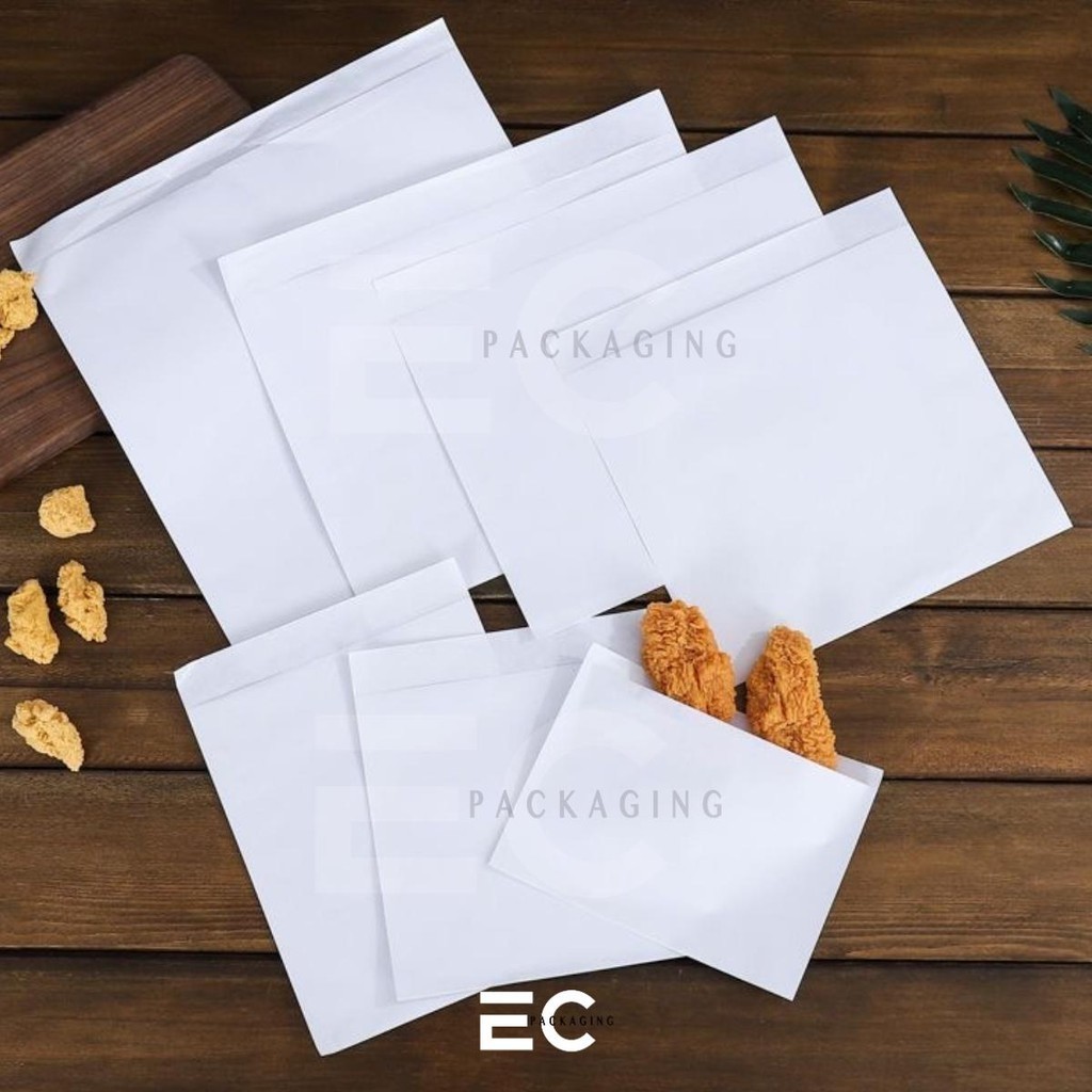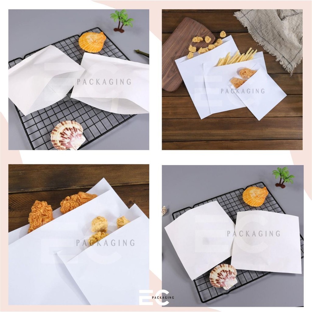 [EC] 100Pcs White Greaseproof Paper Bag Pouch Food Wrapper Sandwich Pouch Fried Chicken Fried Pouch