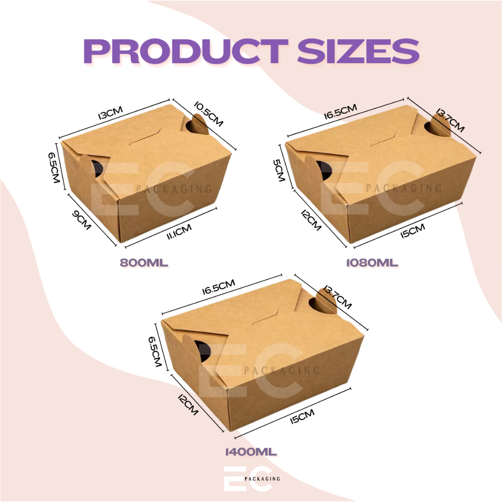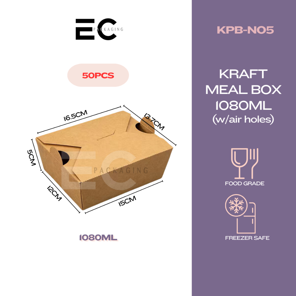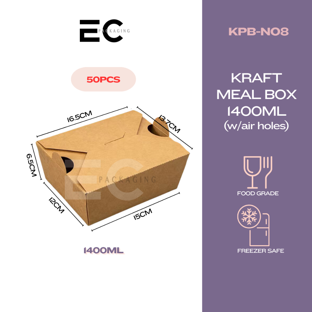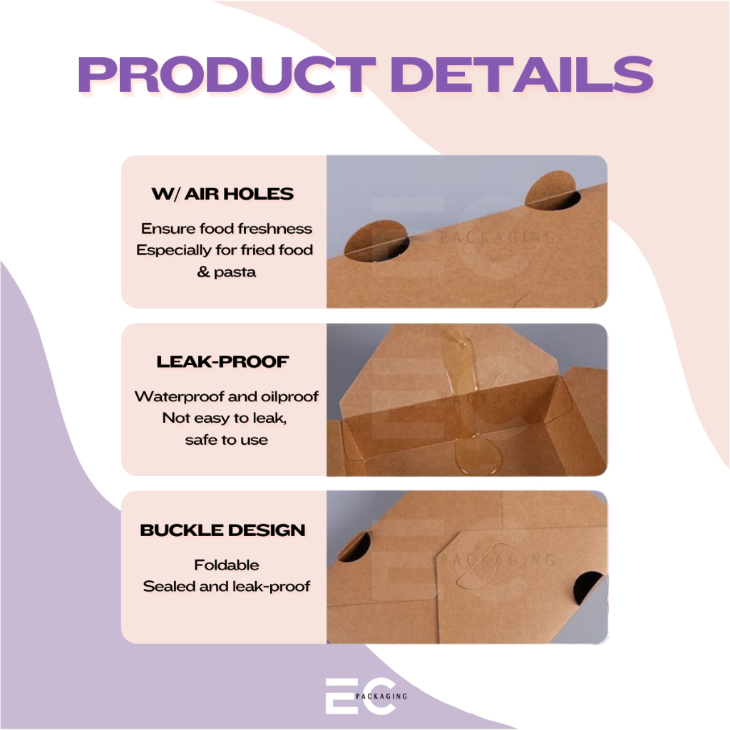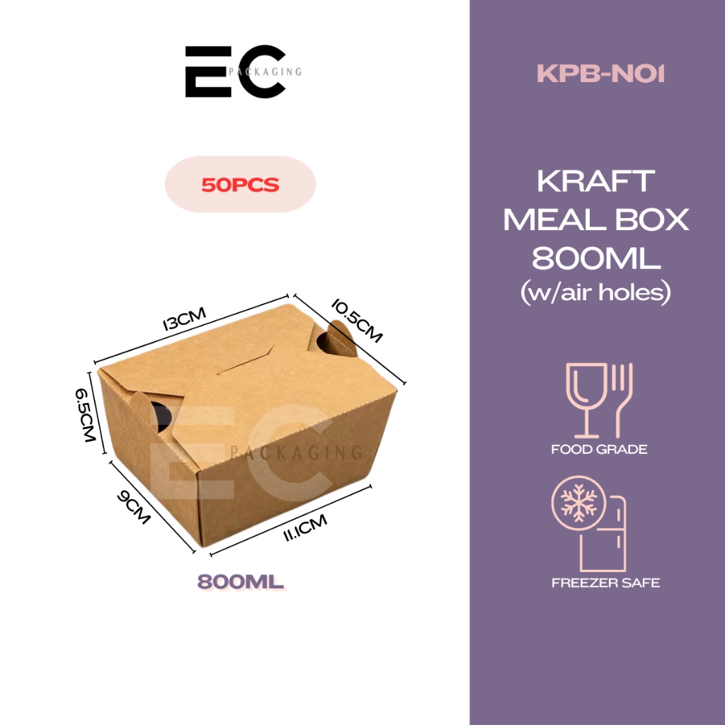 [EC] 50PCS FOOD-GRADE KRAFT PAPER MEAL BOX TAKEOUT BOX ECOFRIENDLY W/ AIR HOLES FOOD BOX DISPOSABLE