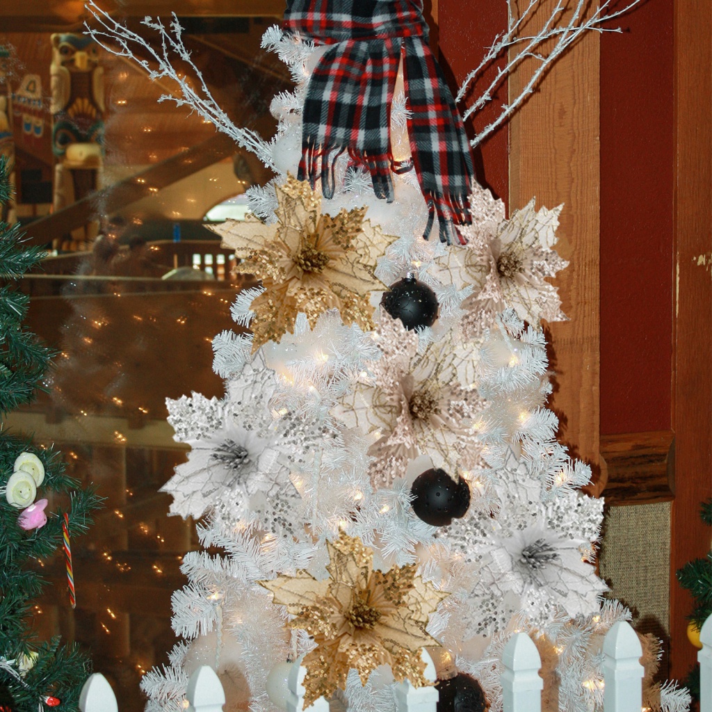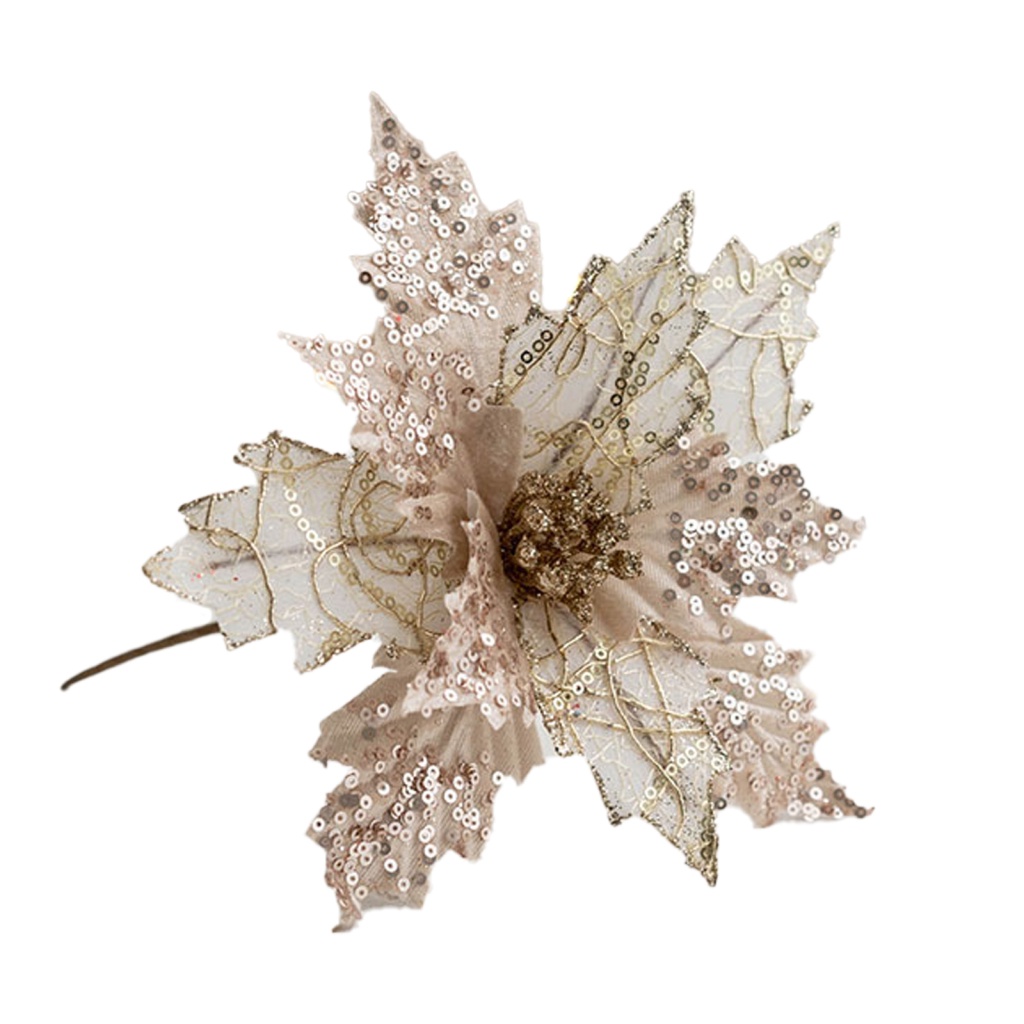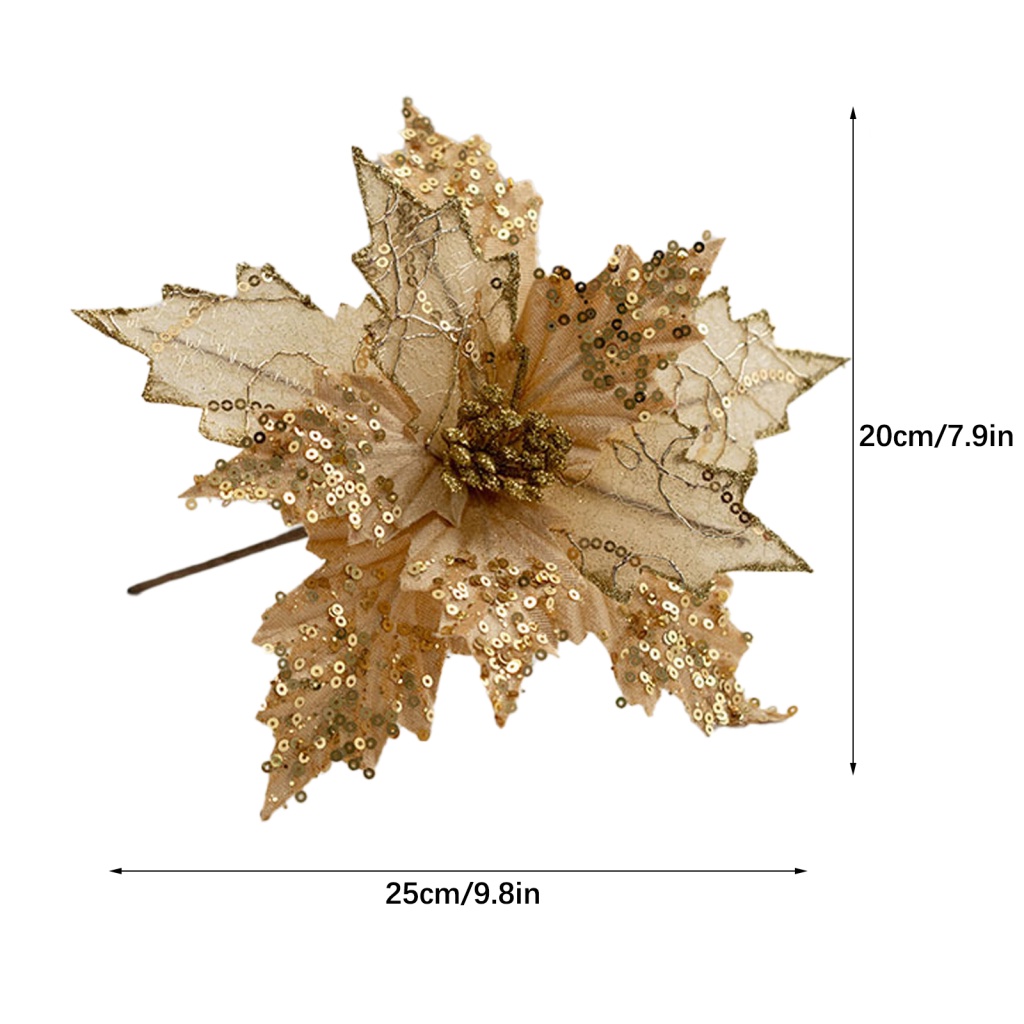 [EPAY] Christmas Tree Ornament Flowers Xmas Ornaments Poinsettia Glitter For New Year Home Decor